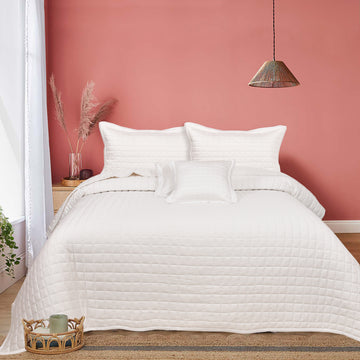 This premium bedding set includes everything you need for a coordinated and sophisticated bedroom aesthetic: 1 king-size bedcover measuring 96x106 inches, 2 standard pillow covers, and 2 cushion covers. Each piece is thoughtfully designed to complement one another, creating a seamless and stylish ensemble.