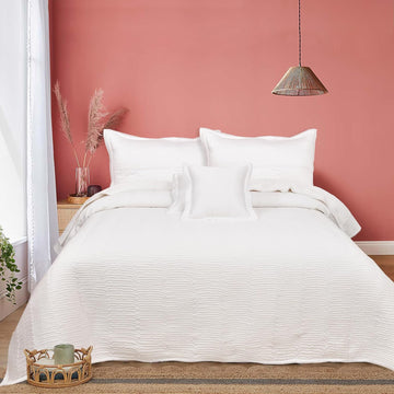 Crafted with precision, the king-size bedcover drapes smoothly over your mattress, offering generous coverage and soft, flowing lines that accentuate the beauty of your bed. The coordinating pillow and cushion covers mirror its elegance, resulting in a polished, harmonious ensemble that exudes sophistication and thoughtful design—making your bedroom not just a space to sleep, but a statement of curated comfort.