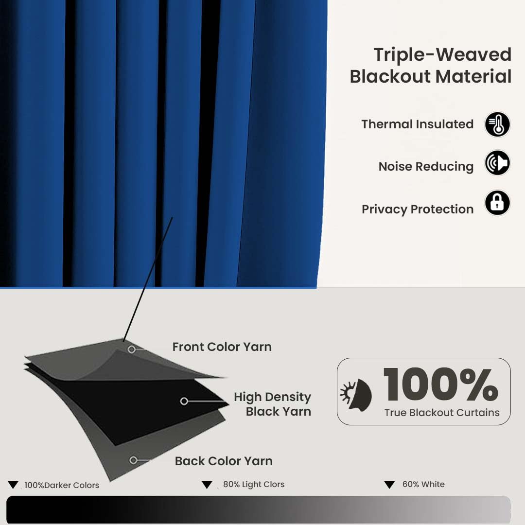 ✅ 100% True Blackout Guarantee: Experience complete darkness like never before! These blackout curtains are crafted with triple weave technology and a specialized blackout lining that blocks 100% of sunlight and UV rays, ensuring maximum privacy and tranquility. Unlike fake blackout curtains, our high-density fabric provides total light blockage, even in lighter colors