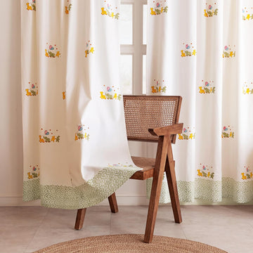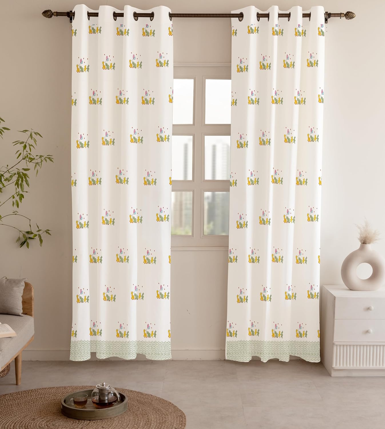 Semi-Sheer Light Filtering: Designed with decorative hand block prints on a white textured fabric, these curtains balance functionality and style. The semi-sheer, non-blackout material allows soft, natural light while maintaining privacy.