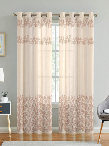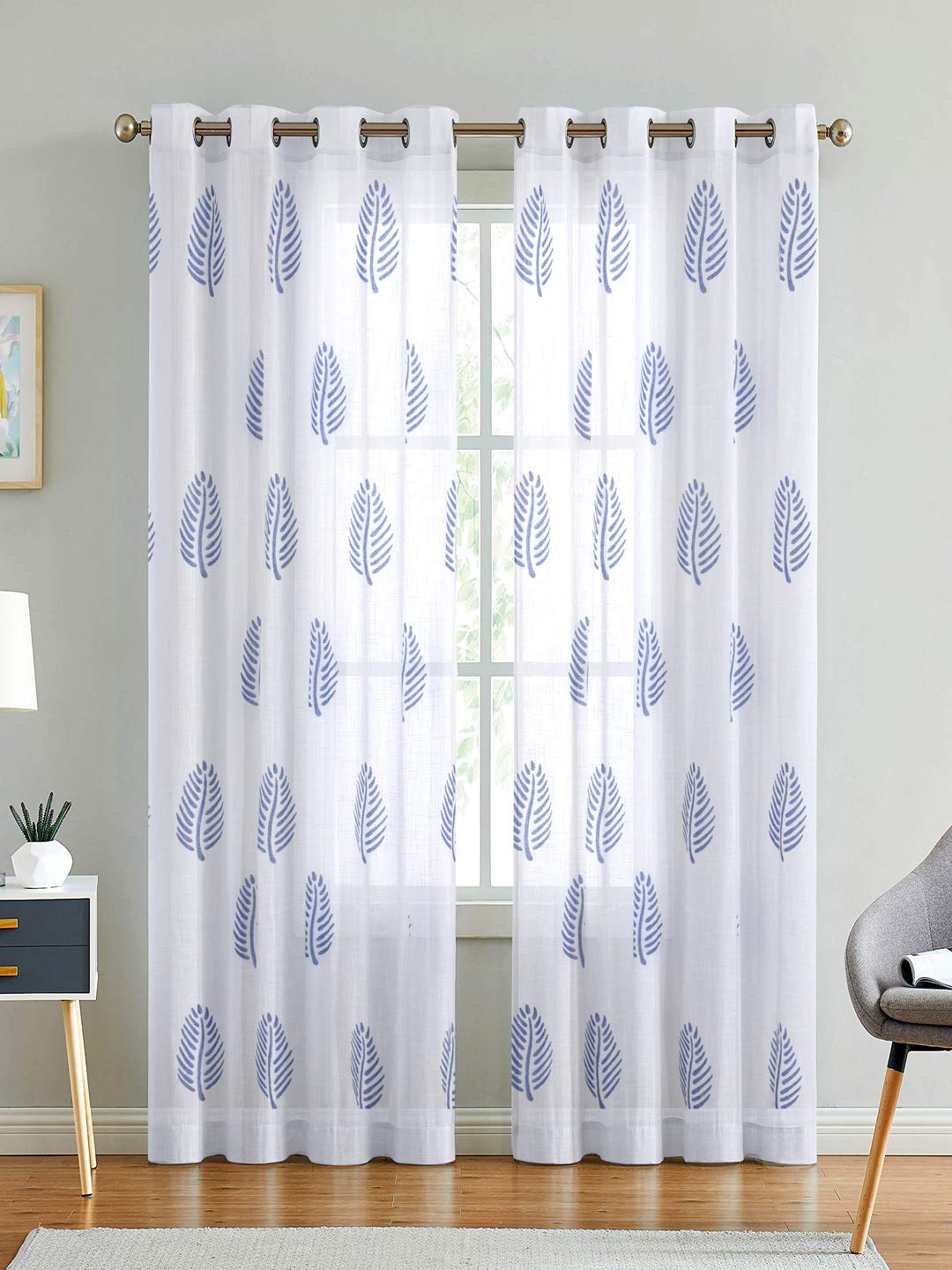 COLOURFUL GARDEN | Handblock Eyelet Sheer Cotton Linen Curtains - Set Of 2 Panels