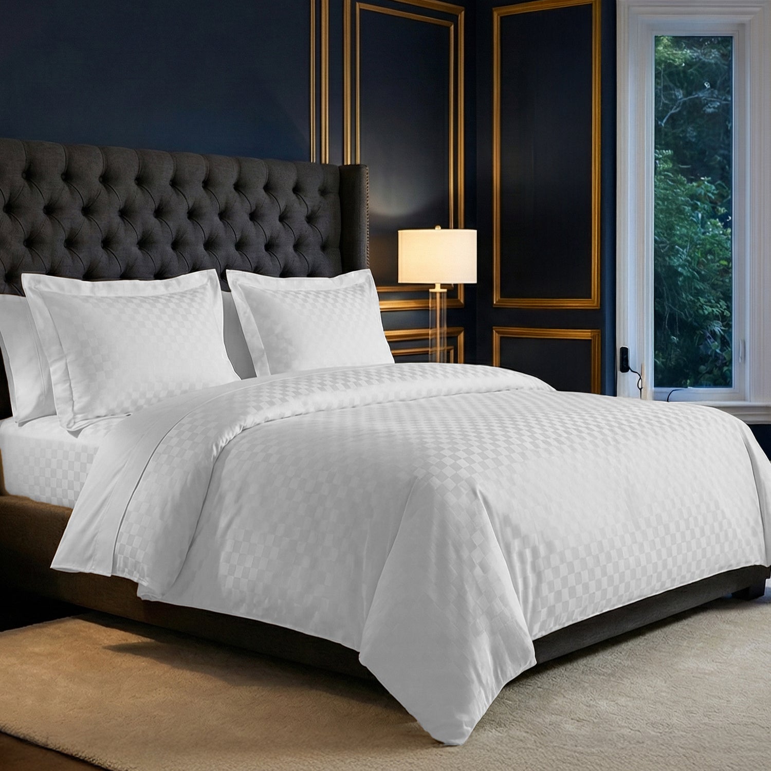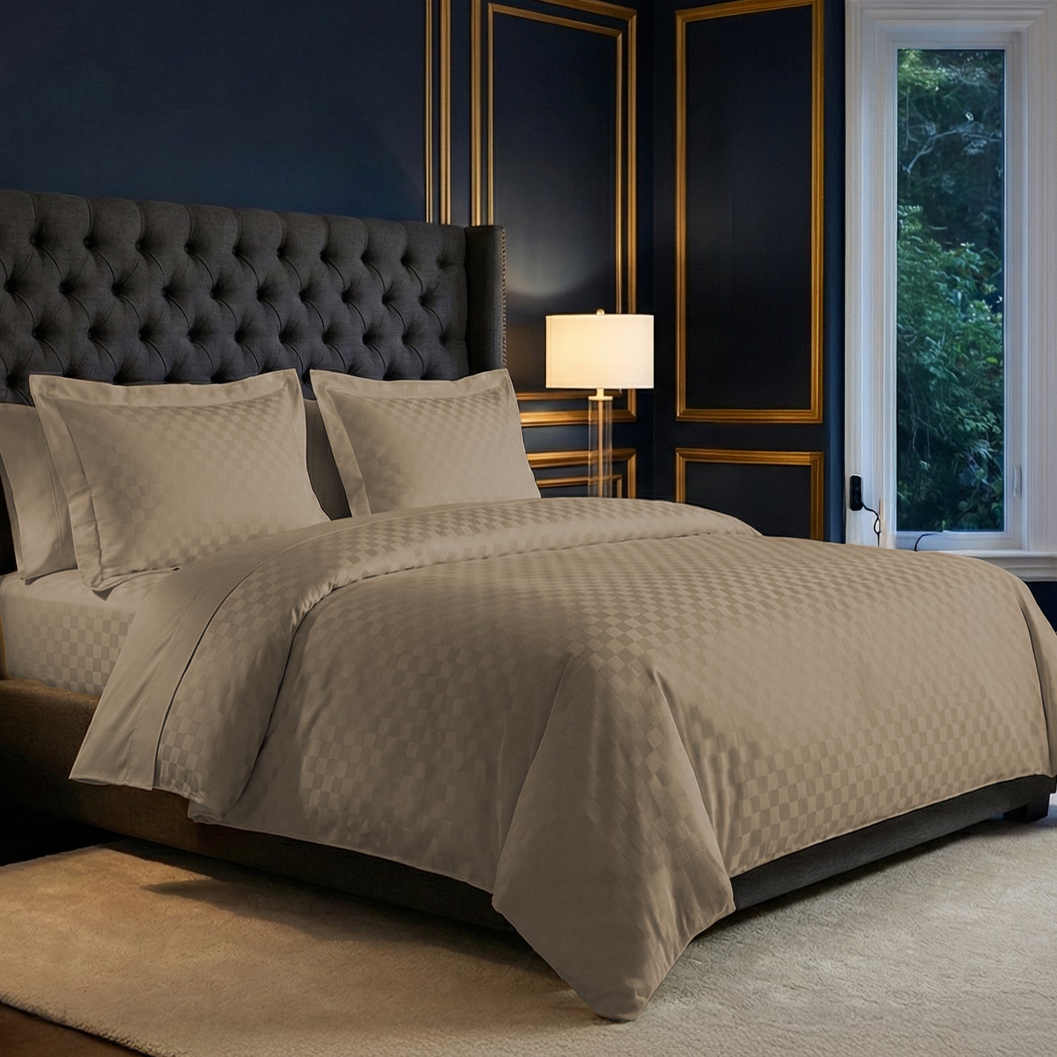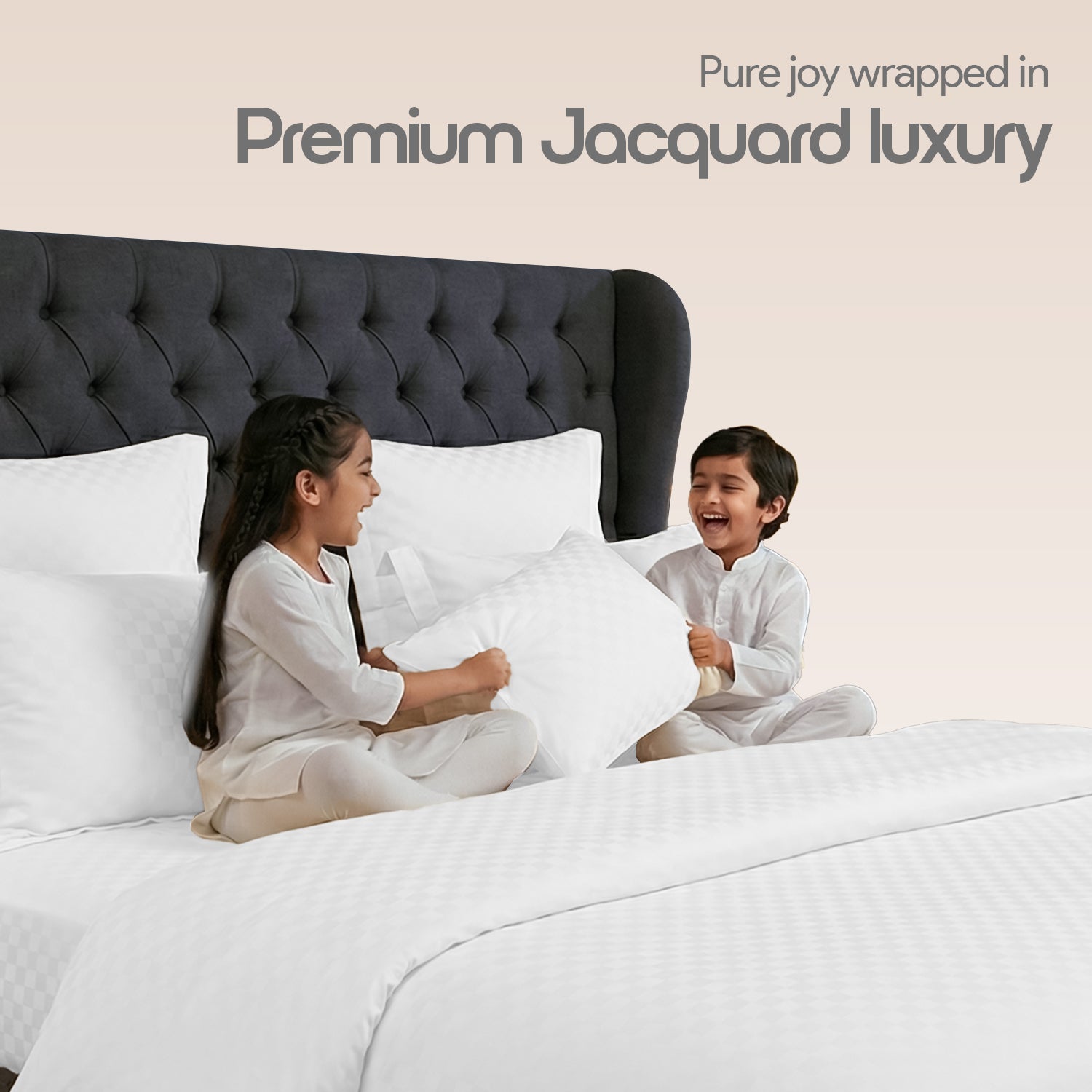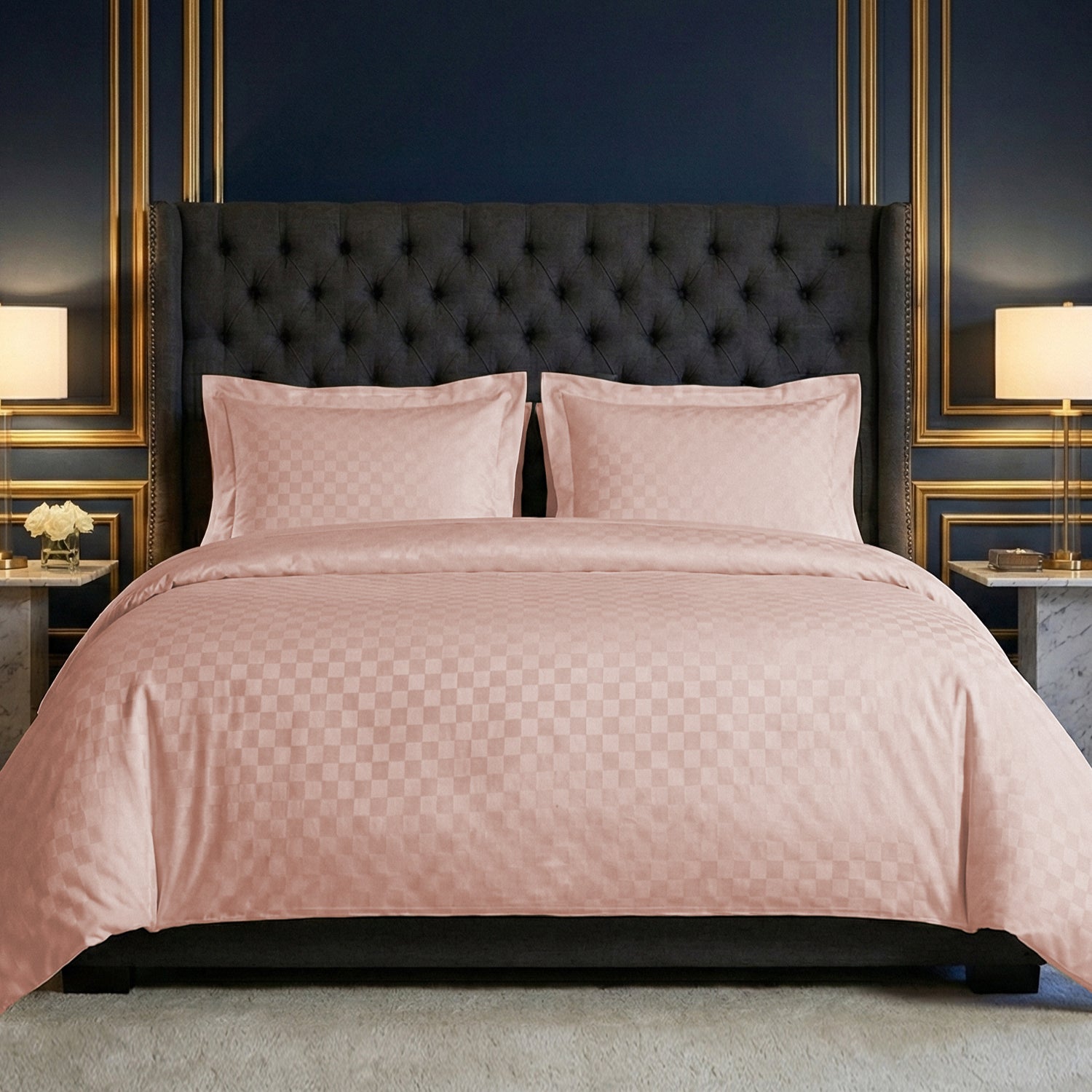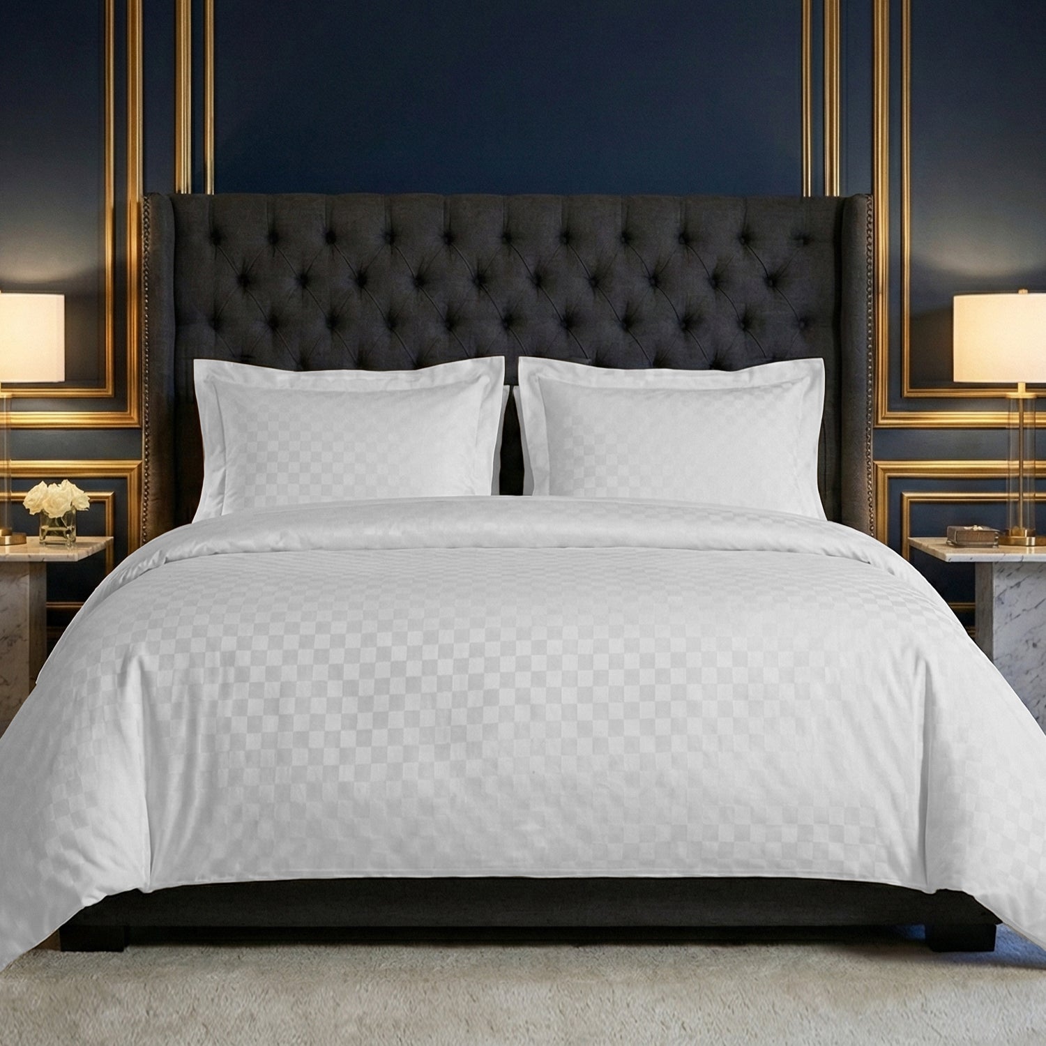 Designed with a refined jacquard self-checks pattern, the bedding features an intricately woven texture with a rich yet understated sheen. This sophisticated detailing adds depth and elegance without being overpowering, delivering a true five-star hotel aesthetic rarely found in everyday home bedding.