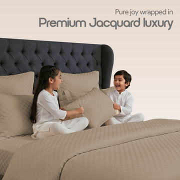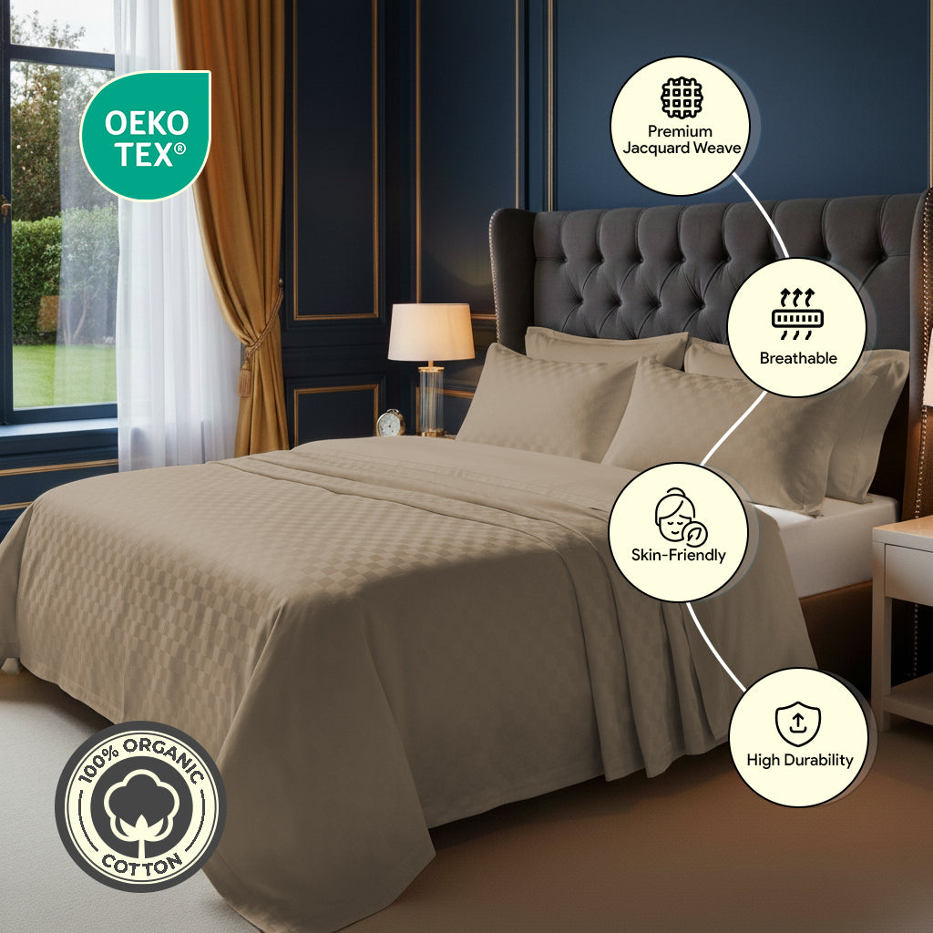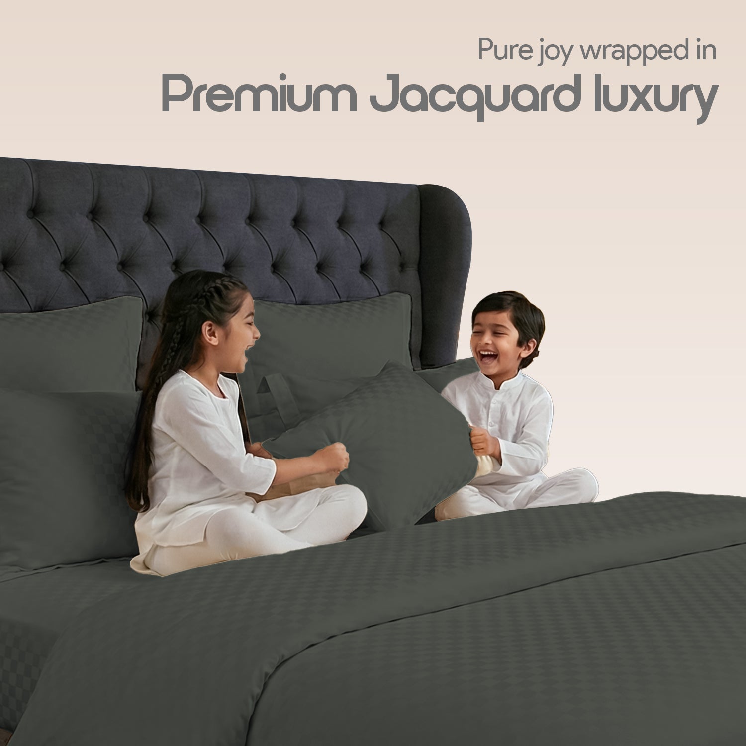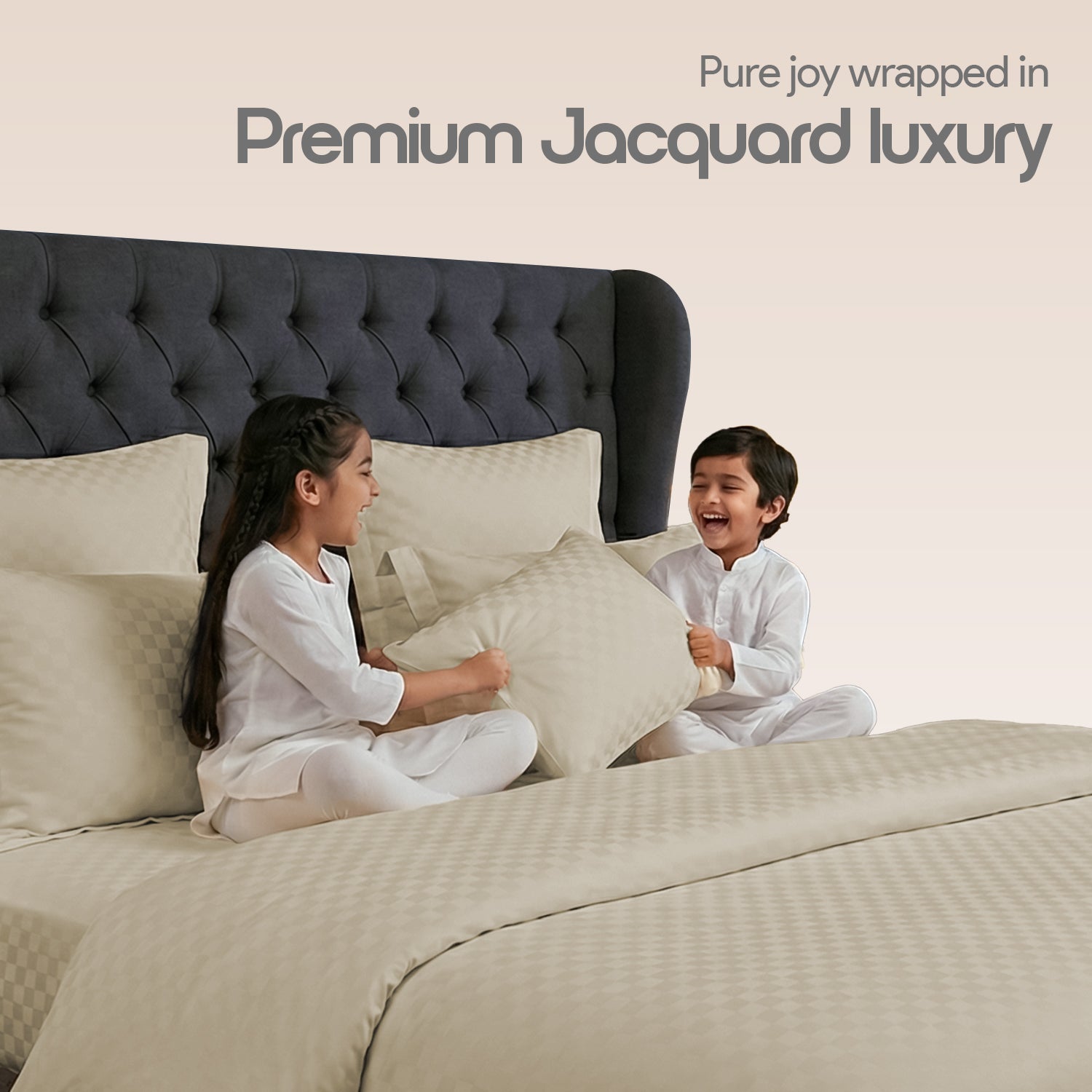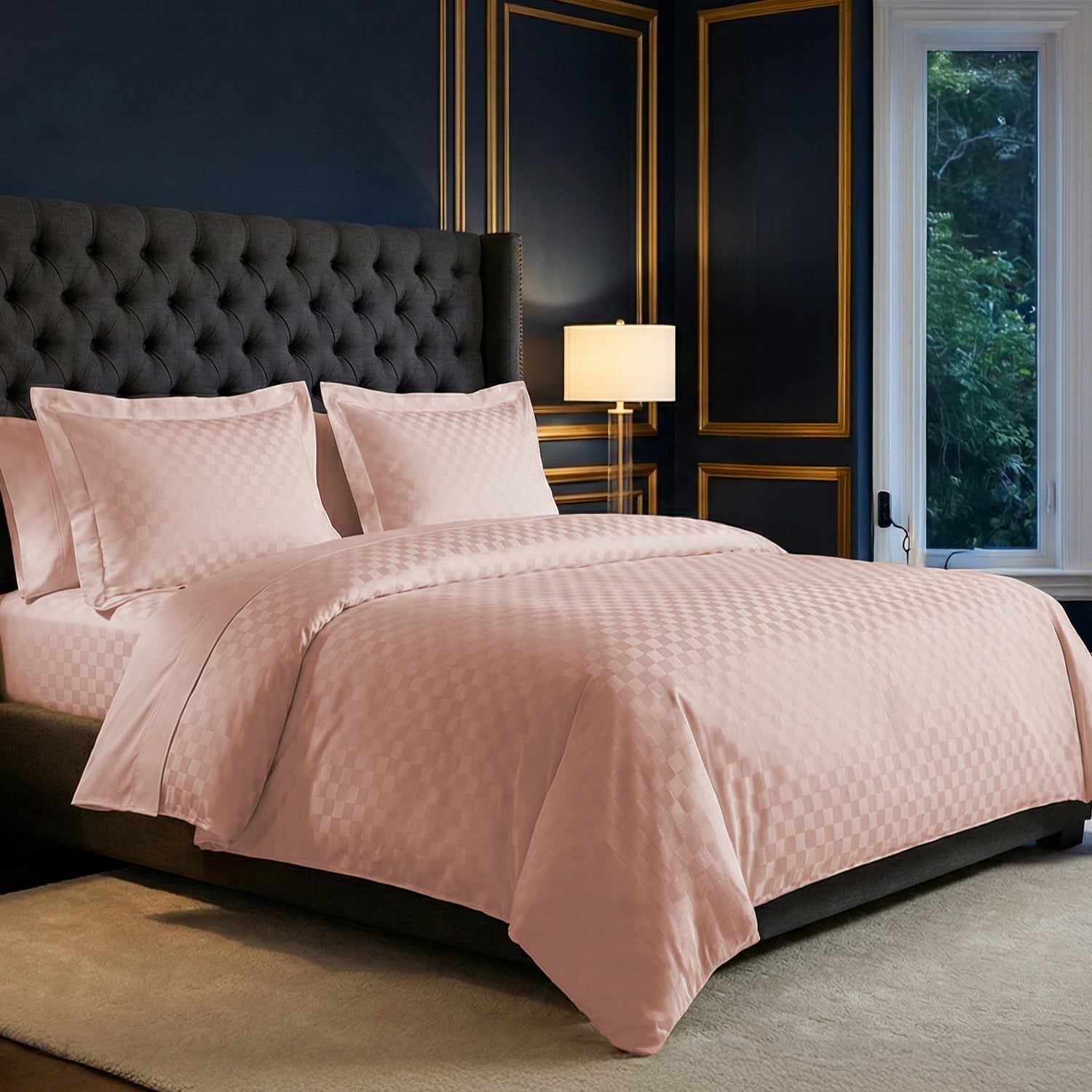 Designed with a refined jacquard self-checks pattern, the bedding features an intricately woven texture with a rich yet understated sheen. This sophisticated detailing adds depth and elegance without being overpowering, delivering a true five-star hotel aesthetic rarely found in everyday home bedding.