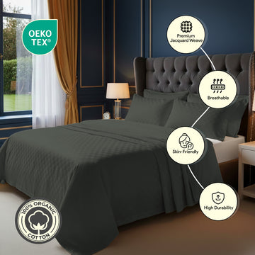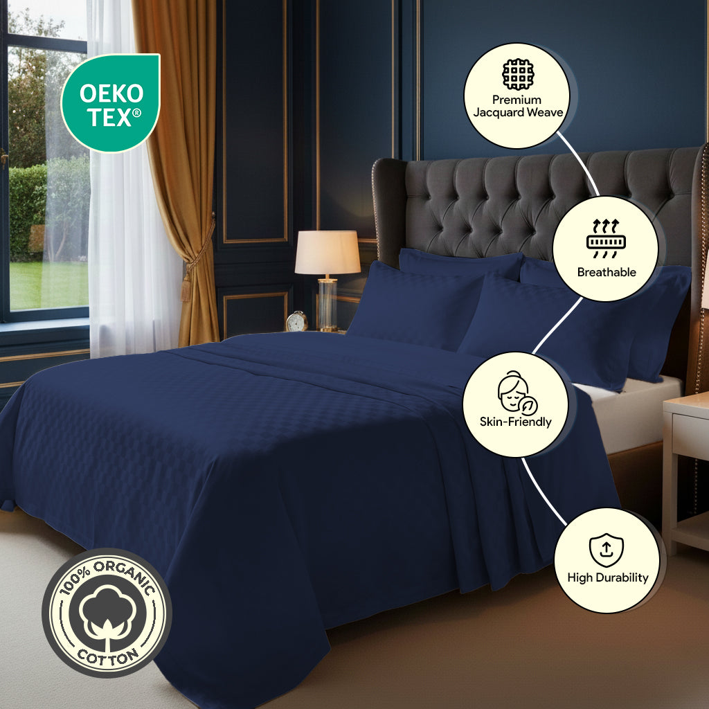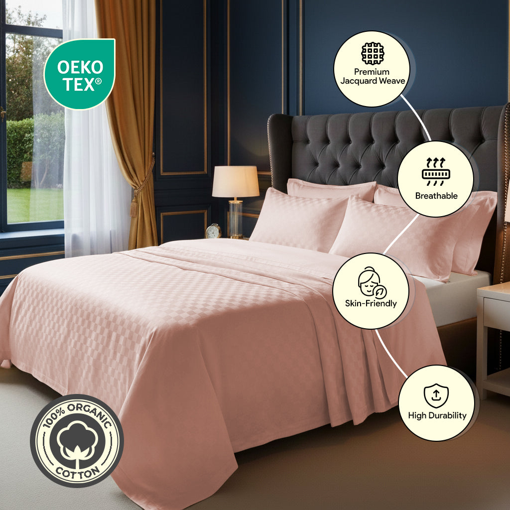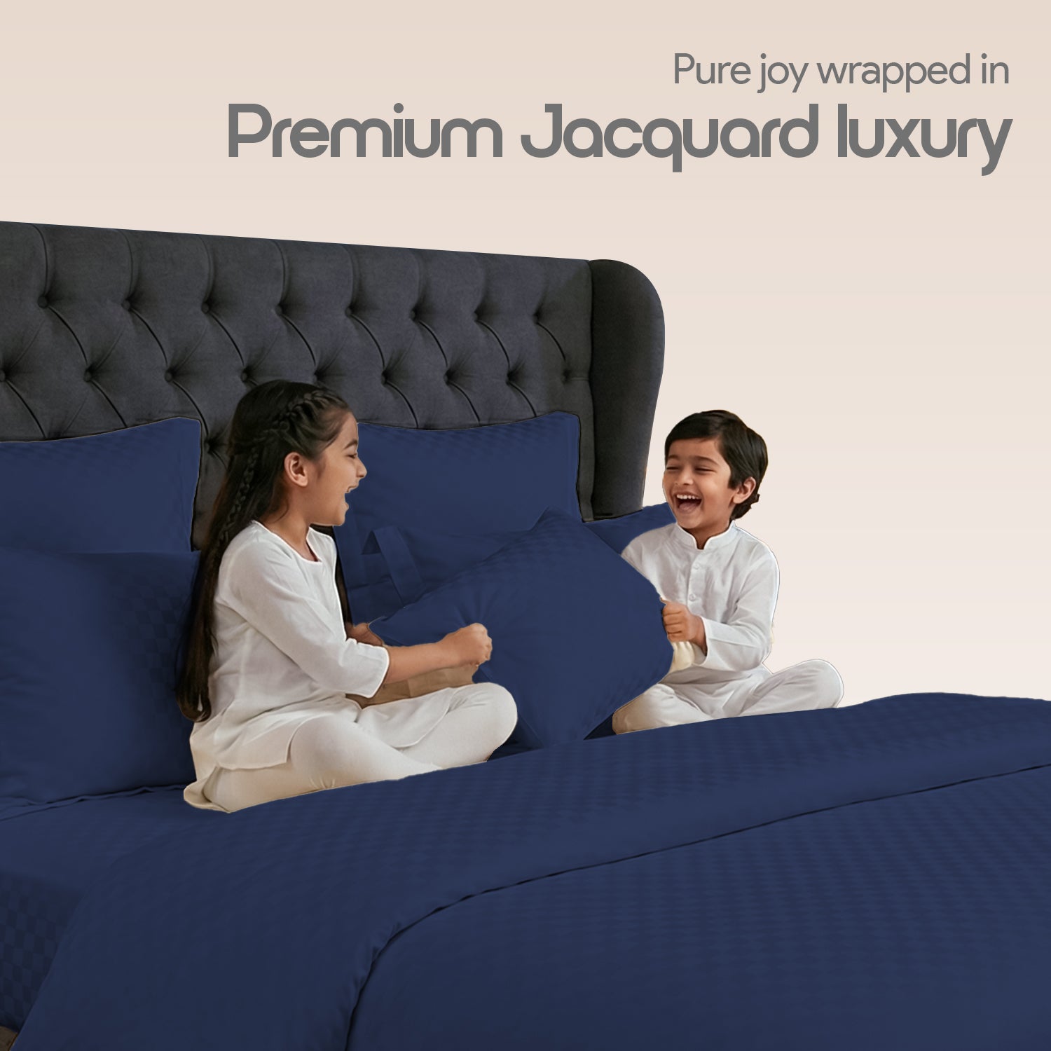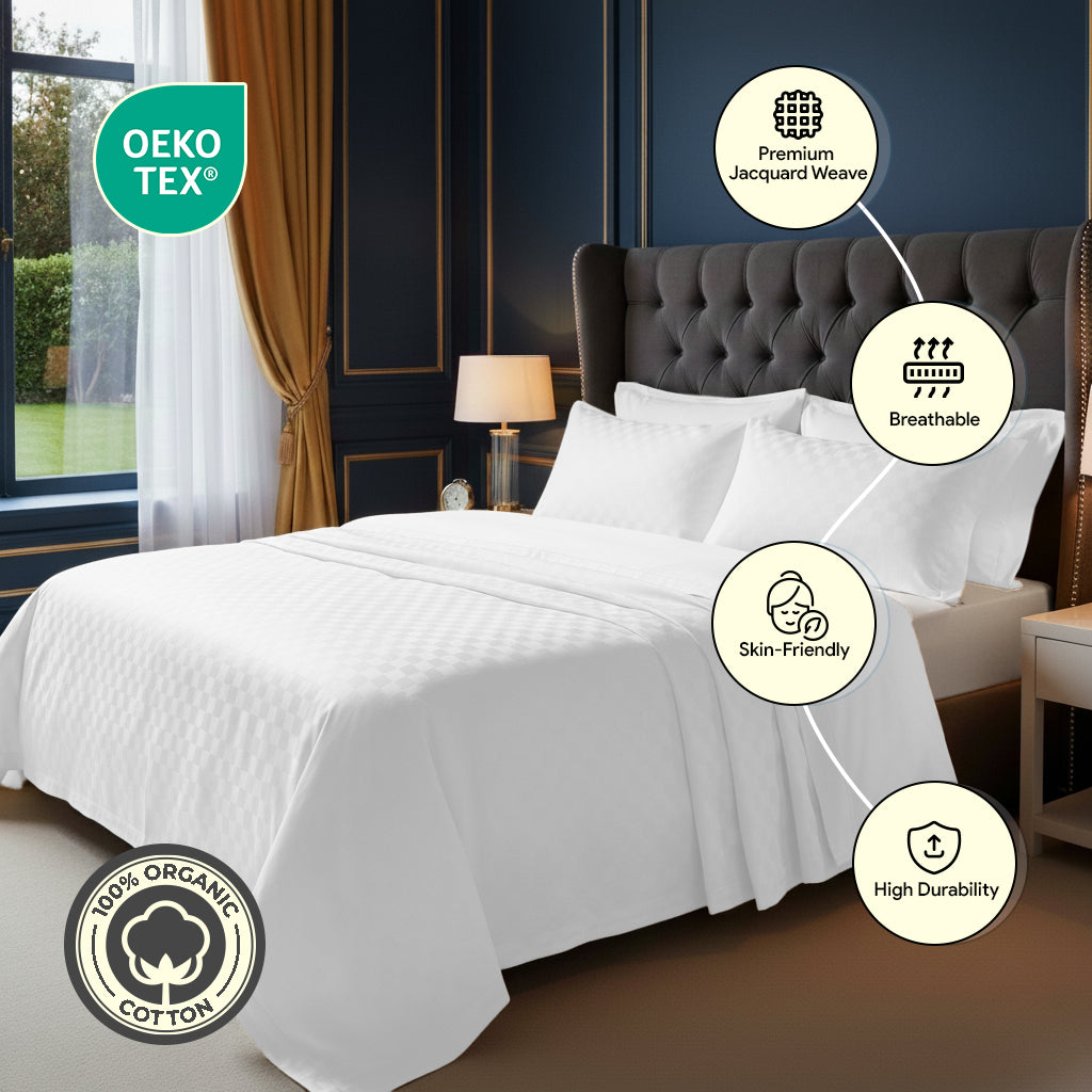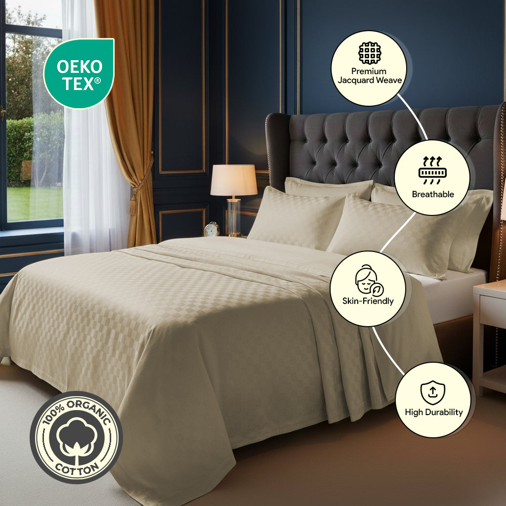 Designed with a refined jacquard self-checks pattern, the bedding features an intricately woven texture with a rich yet understated sheen. This sophisticated detailing adds depth and elegance without being overpowering, delivering a true five-star hotel aesthetic rarely found in everyday home bedding.