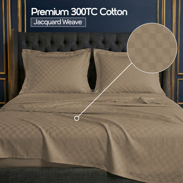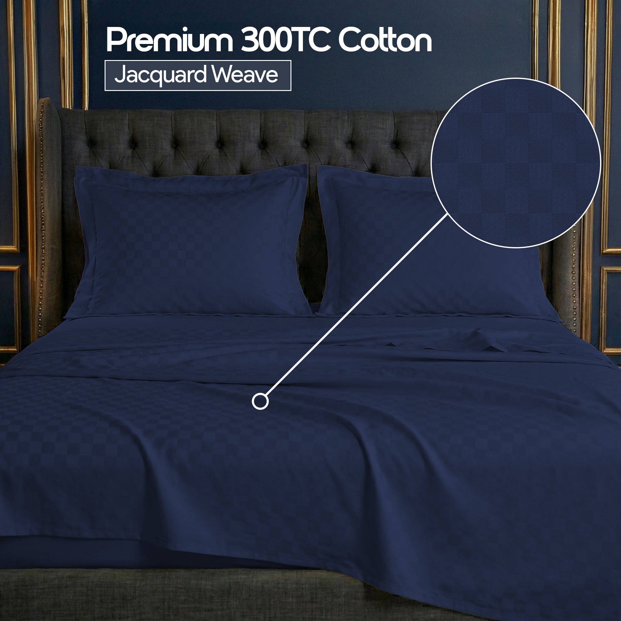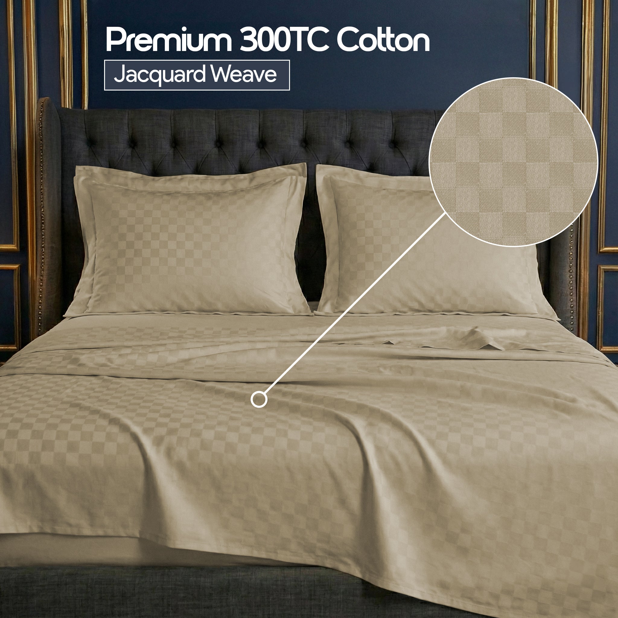 Crafted from pure, natural 100% cotton with a genuine 300 thread count, this bedding is made without fiber blending or shortcuts. Woven using a premium jacquard technique, it offers a naturally smooth finish, subtle sheen, buttery-soft feel, and rich drape—qualities typically associated with luxury hotel linens rather than mass-market sheets.