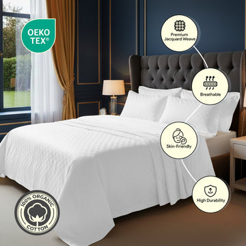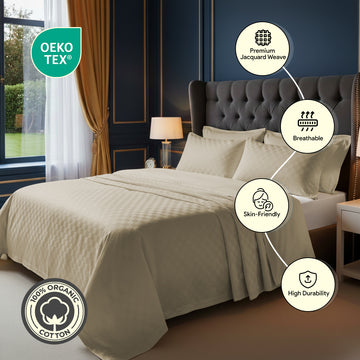 Naturally breathable and gentle on the skin, this premium cotton bedding ensures year-round comfort. The high-quality jacquard weave maintains its softness, texture, and appearance even after repeated washes, making it ideal for both everyday use and long-term luxury.