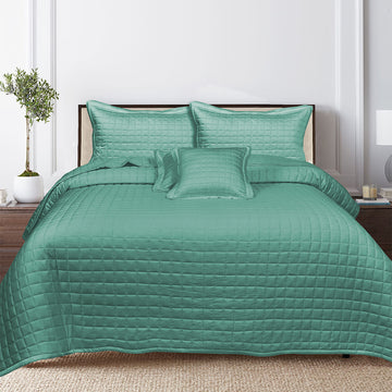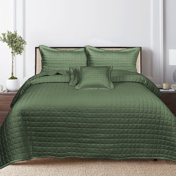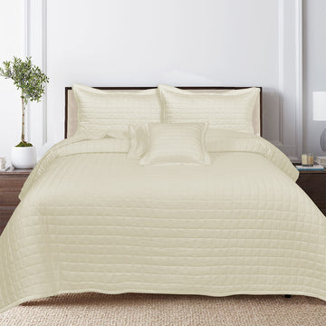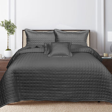 This premium bedding set includes everything you need for a coordinated and sophisticated bedroom aesthetic: 1 king-size bedcover measuring 96x106 inches, 2 standard pillow covers, and 2 cushion covers. Each piece is thoughtfully designed to complement one another, creating a seamless and stylish ensemble.