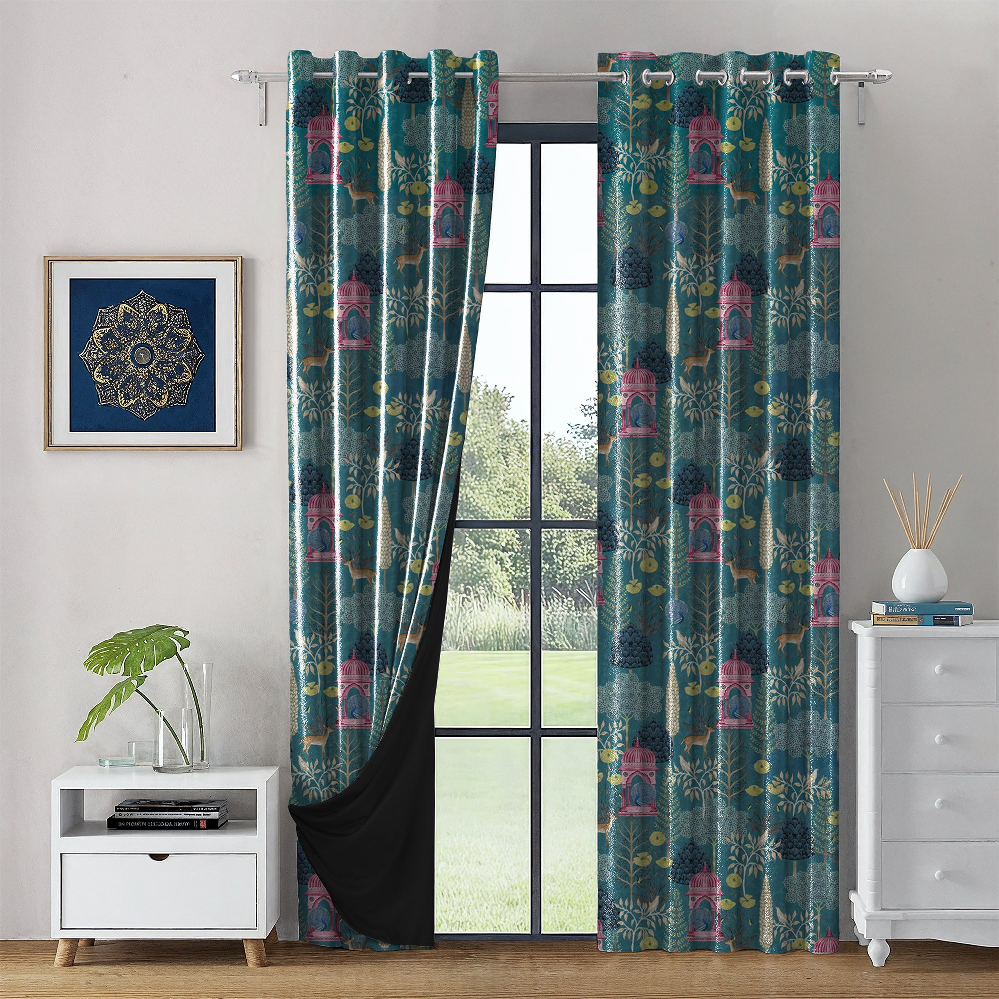 PICHWAI | Luxury Printed Blackout Curtains for Windows & Doors | Premium Room Darkening & Thermal Insulated Curtains for Bedroom & Living Room Décor (Pack of 2)
