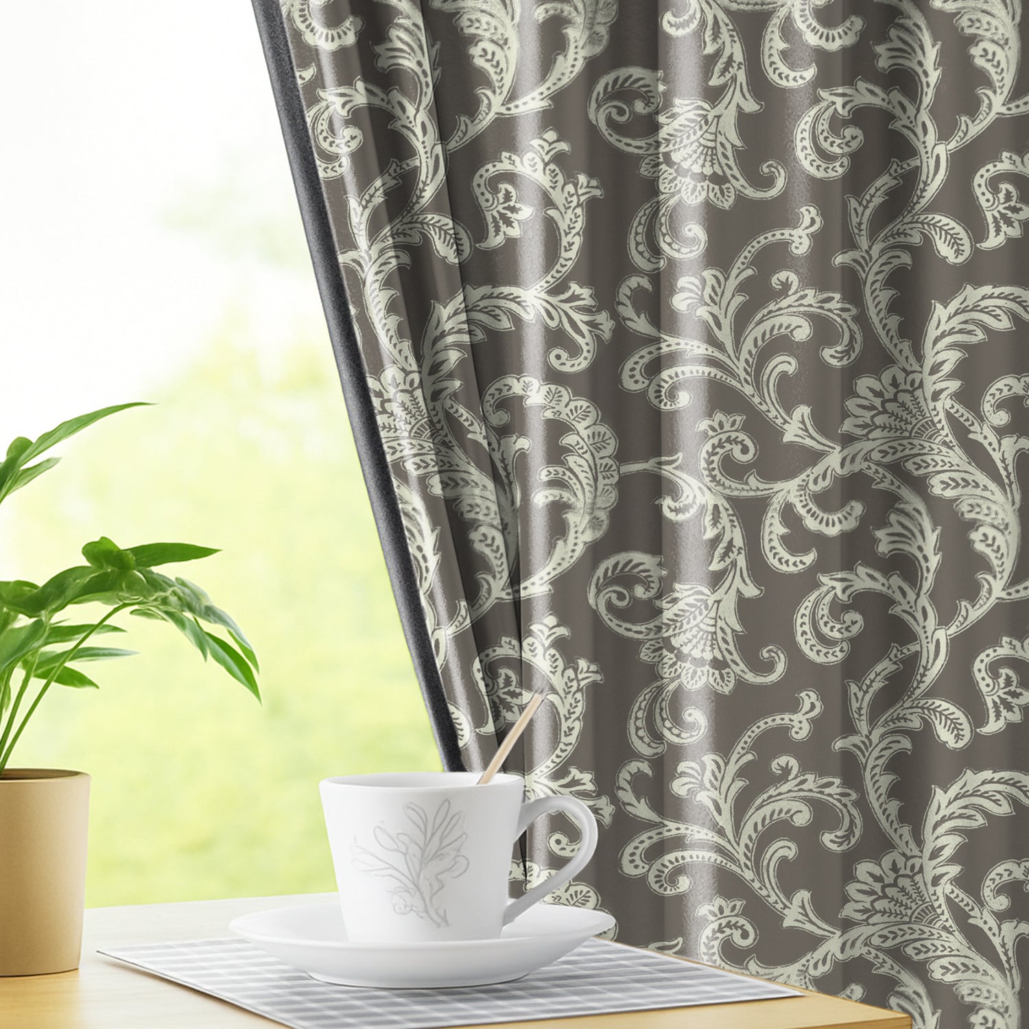 🌿 Gracious Vines Collection – Luxury Redefined – Inspired by timeless European vines, these curtains feature intricate swirling leaf motifs in elegant Taupe, Turquoise and Olive Green. A perfect blend of sophistication and style that enhances modern as well as classic interiors.