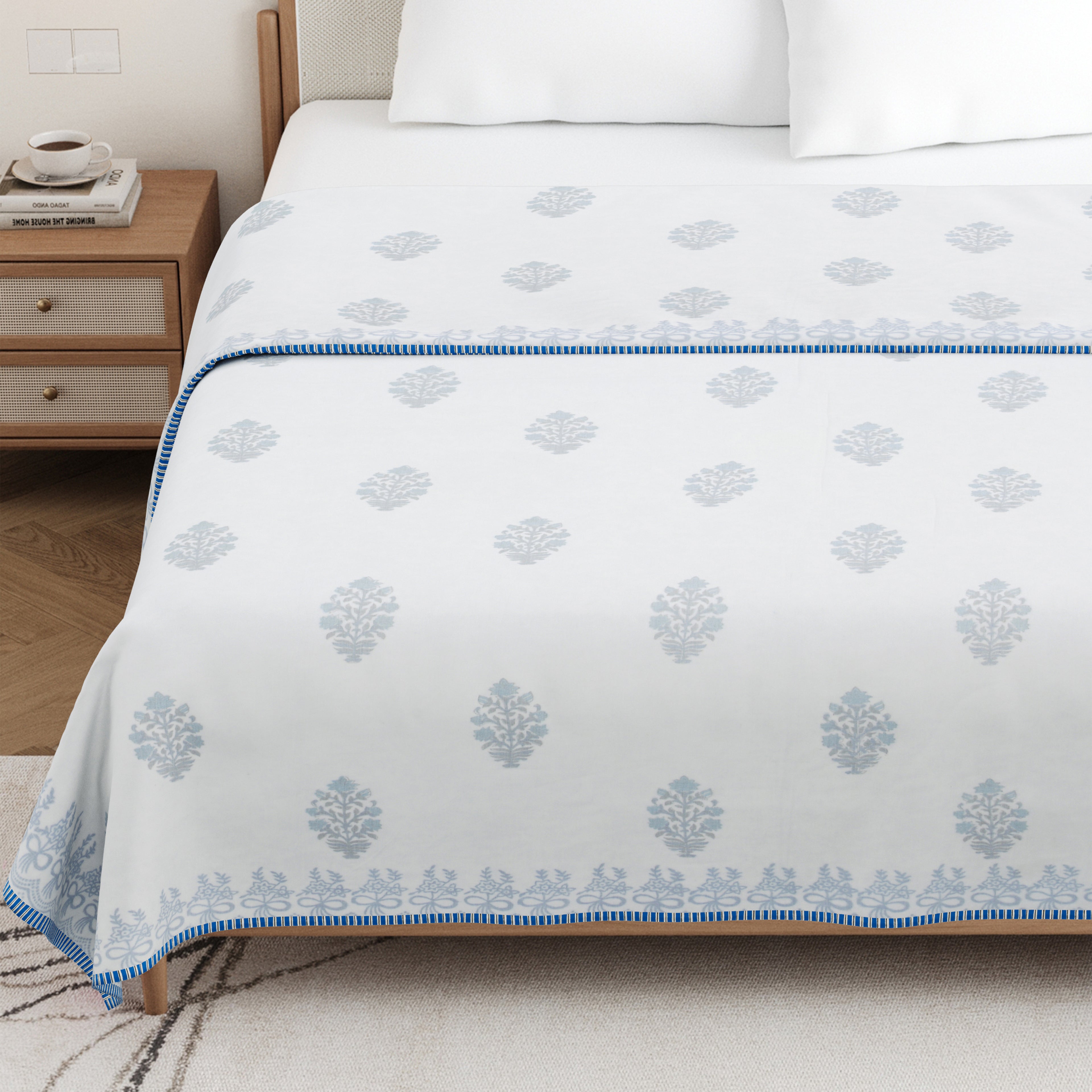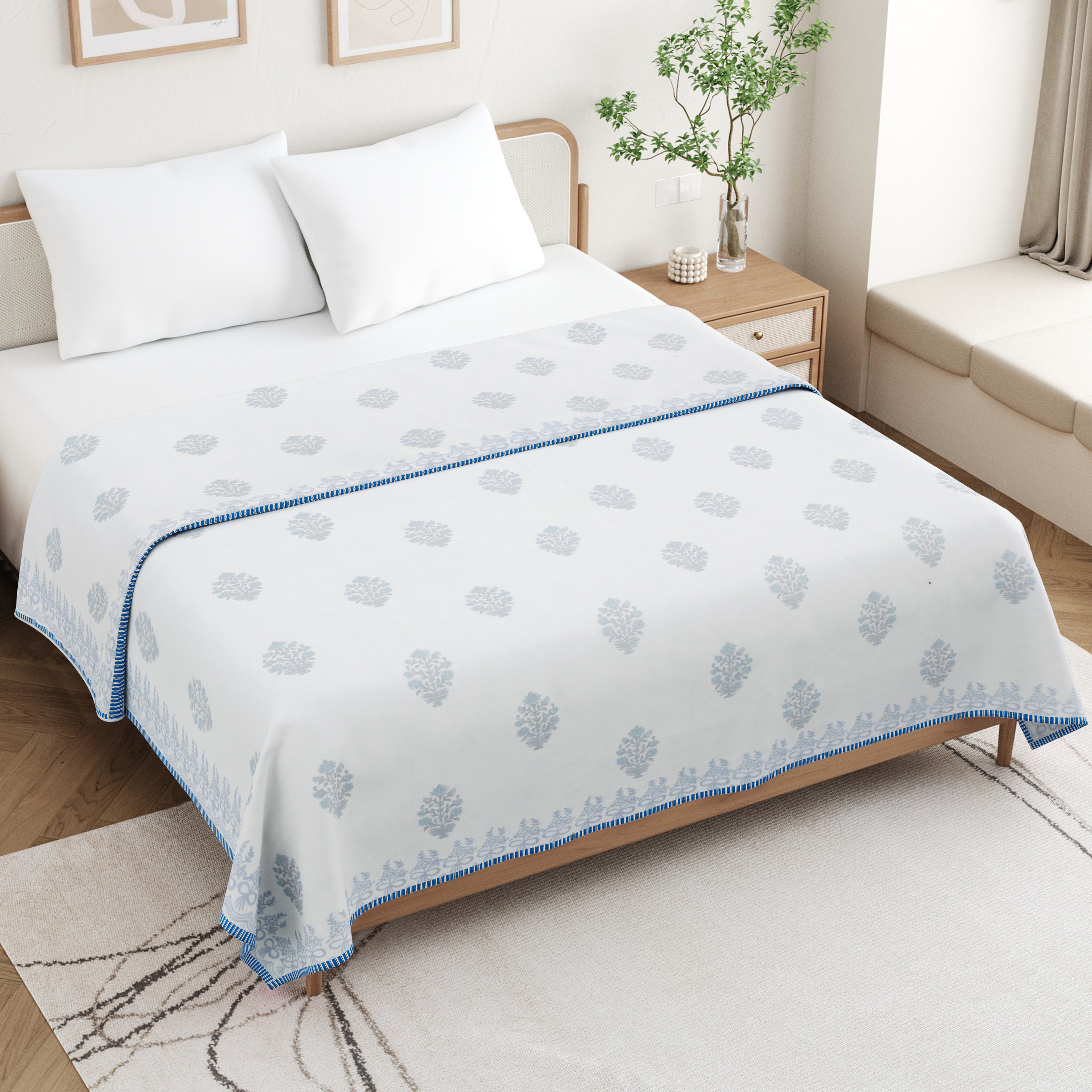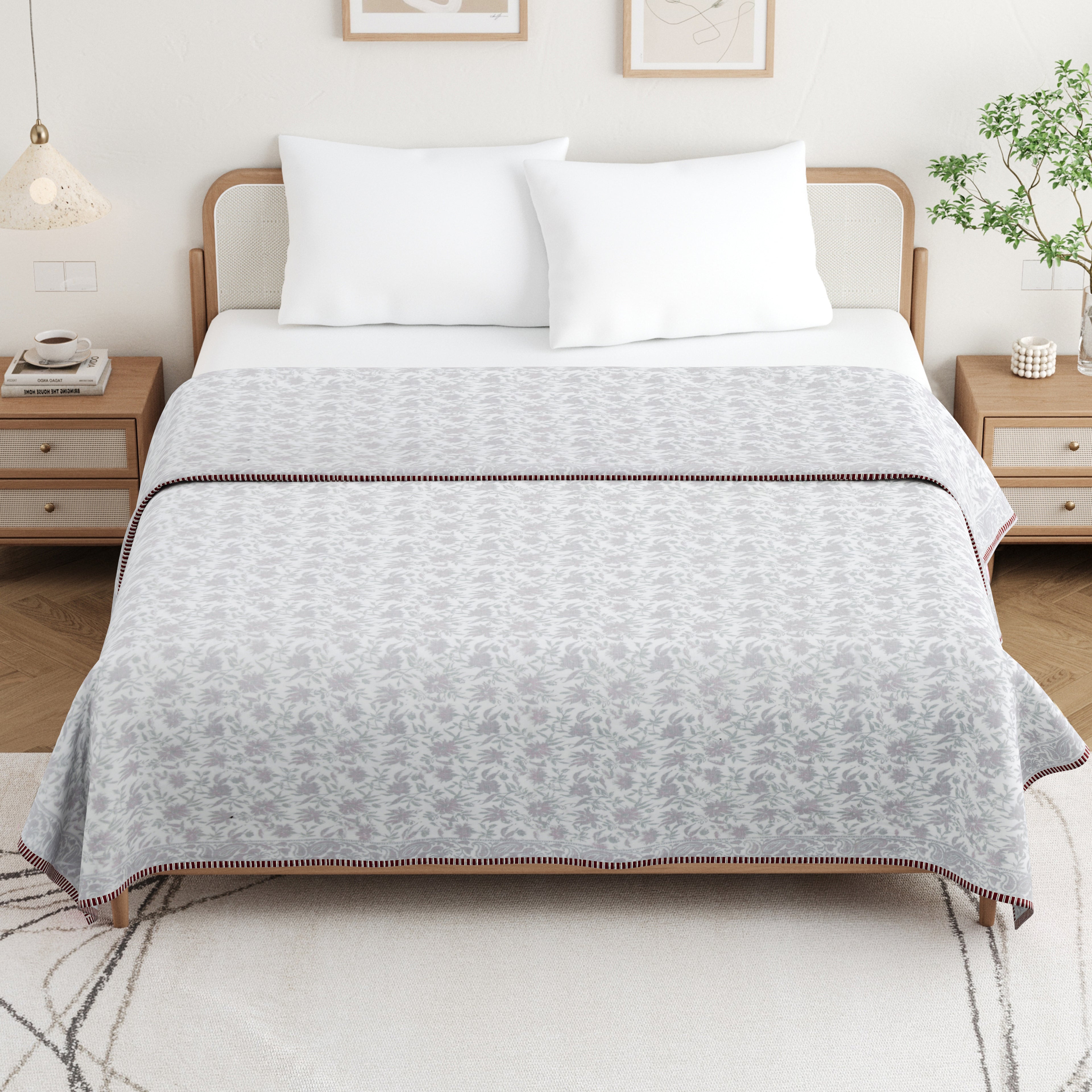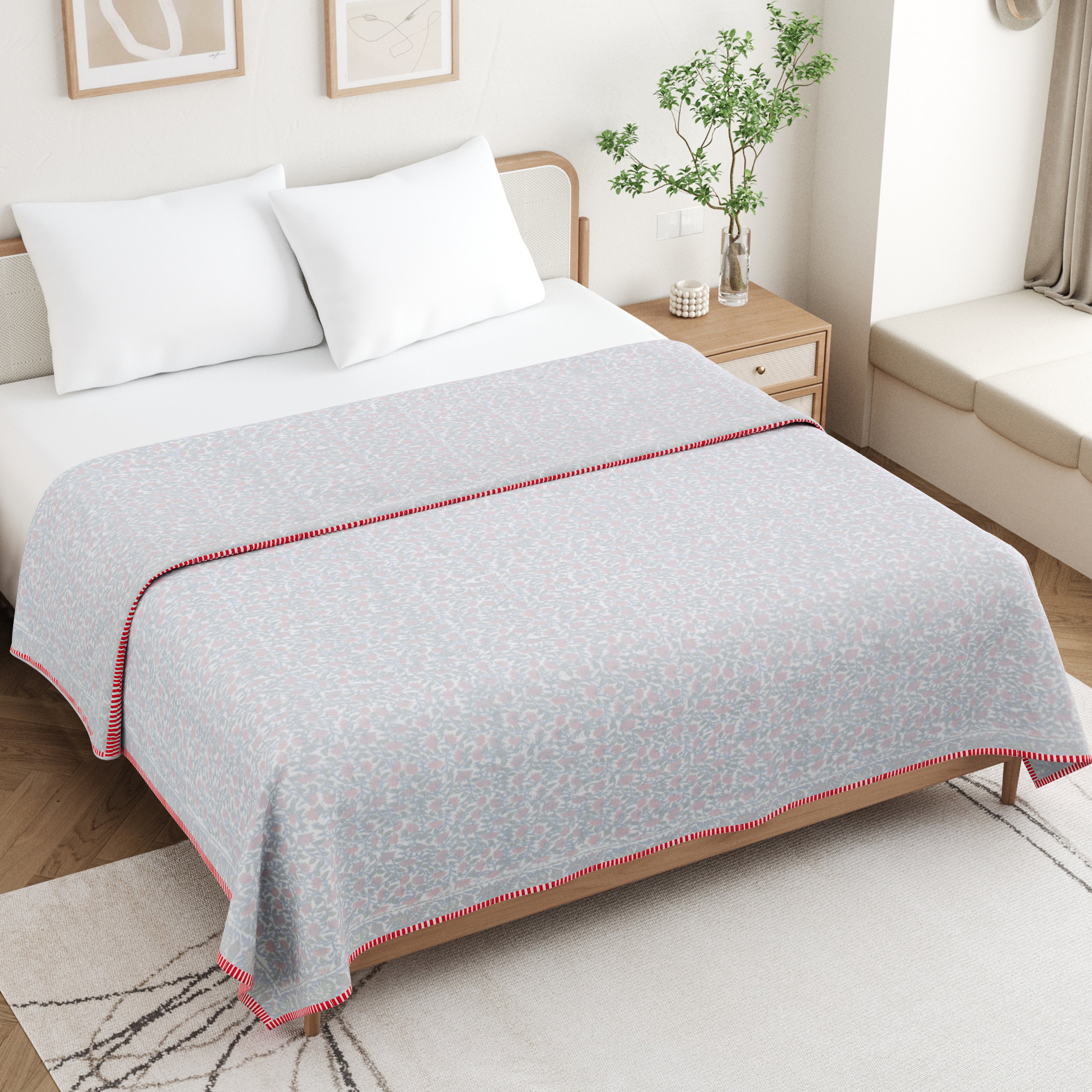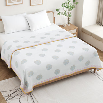 🎨 Authentic Handblock Printing – Handcrafted with intricate handblock prints by skilled artisans, each dohar carries timeless charm, making it not just a blanket but a piece of art for your bedroom.