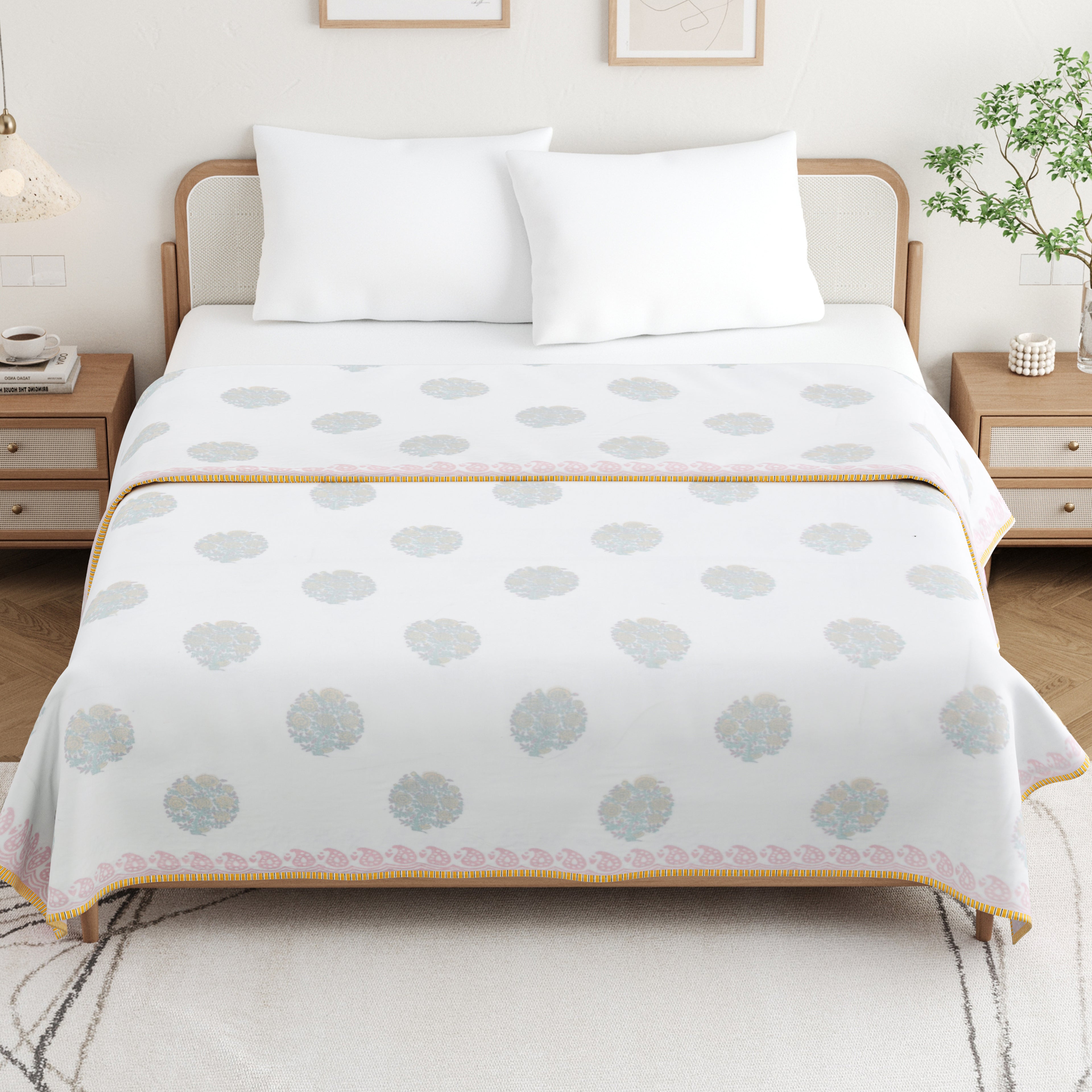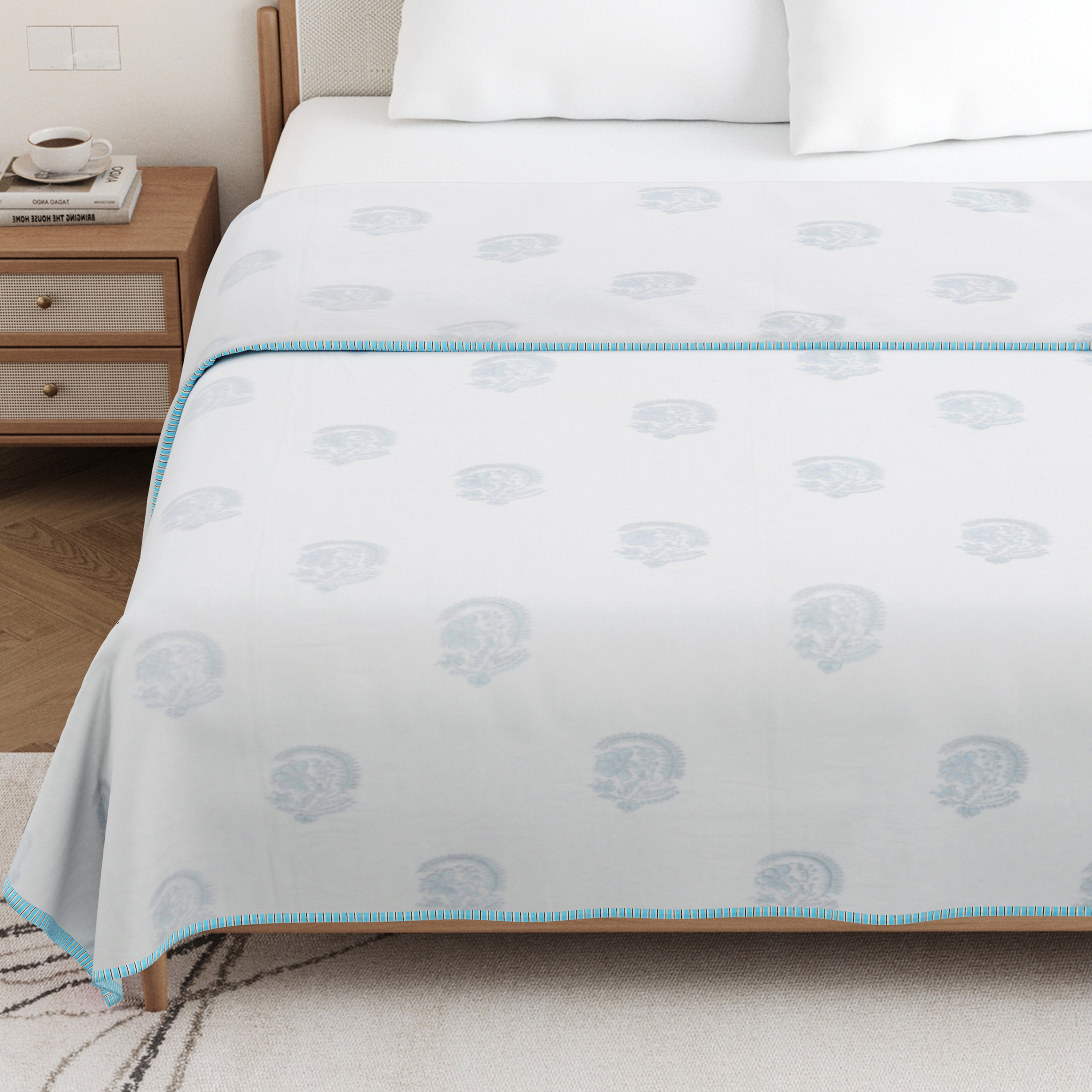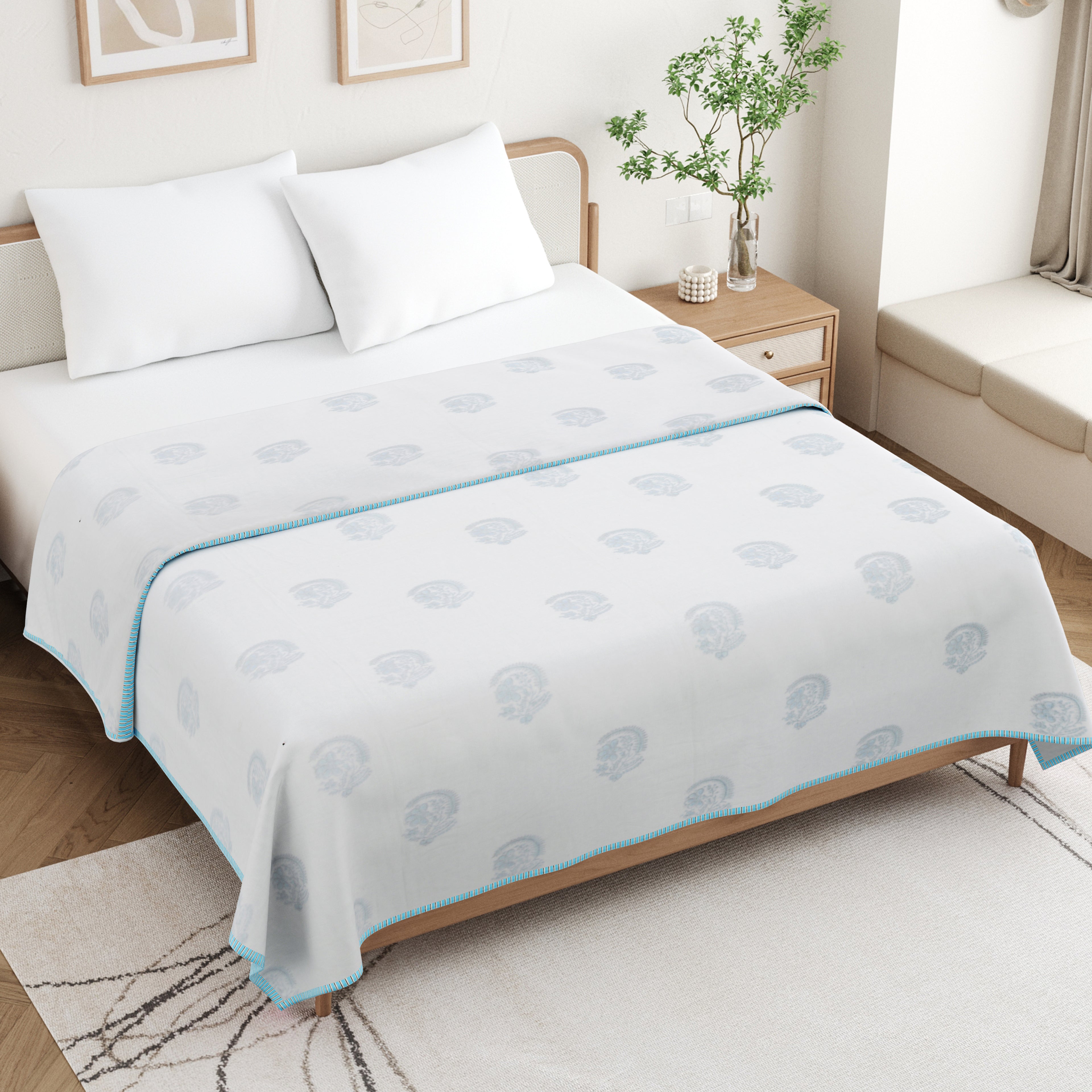 🎨 Authentic Handblock Printing – Handcrafted with intricate handblock prints by skilled artisans, each dohar carries timeless charm, making it not just a blanket but a piece of art for your bedroom.