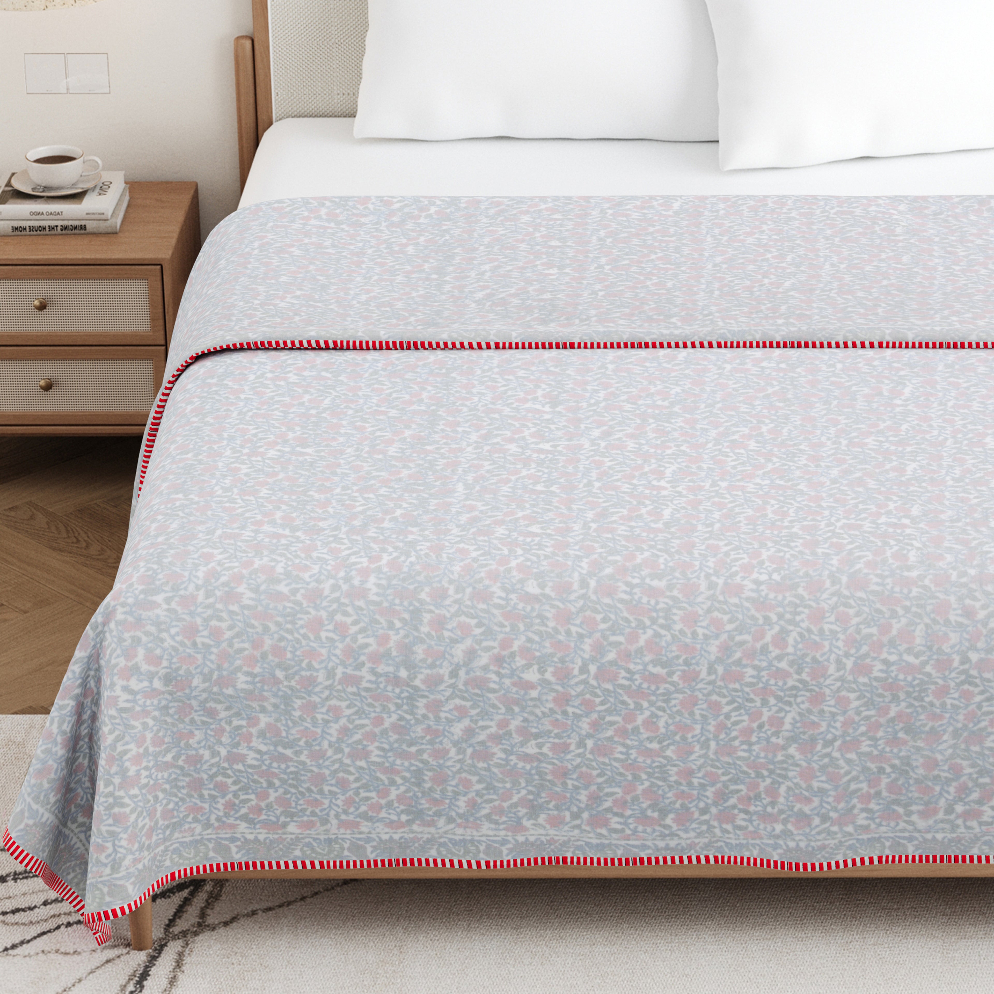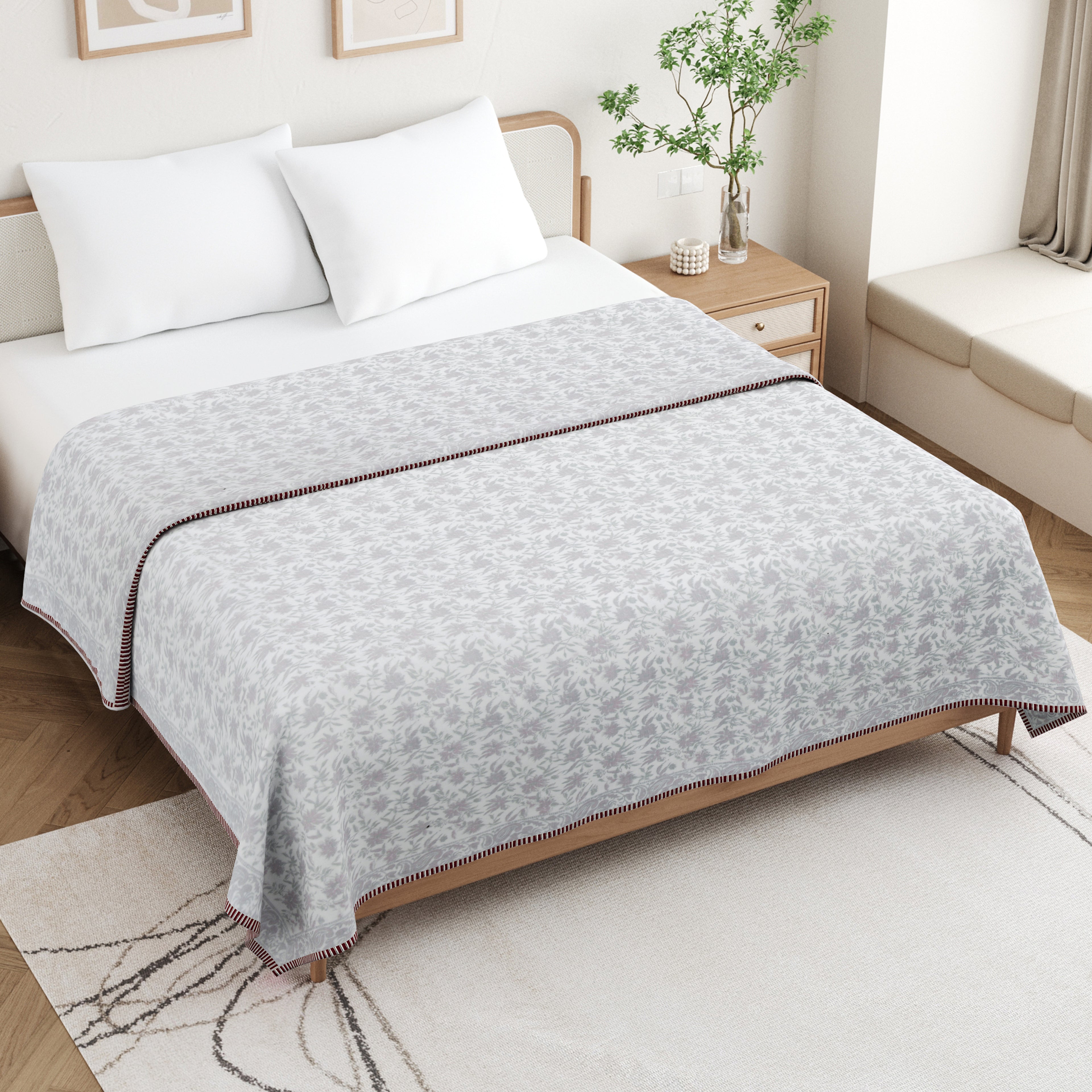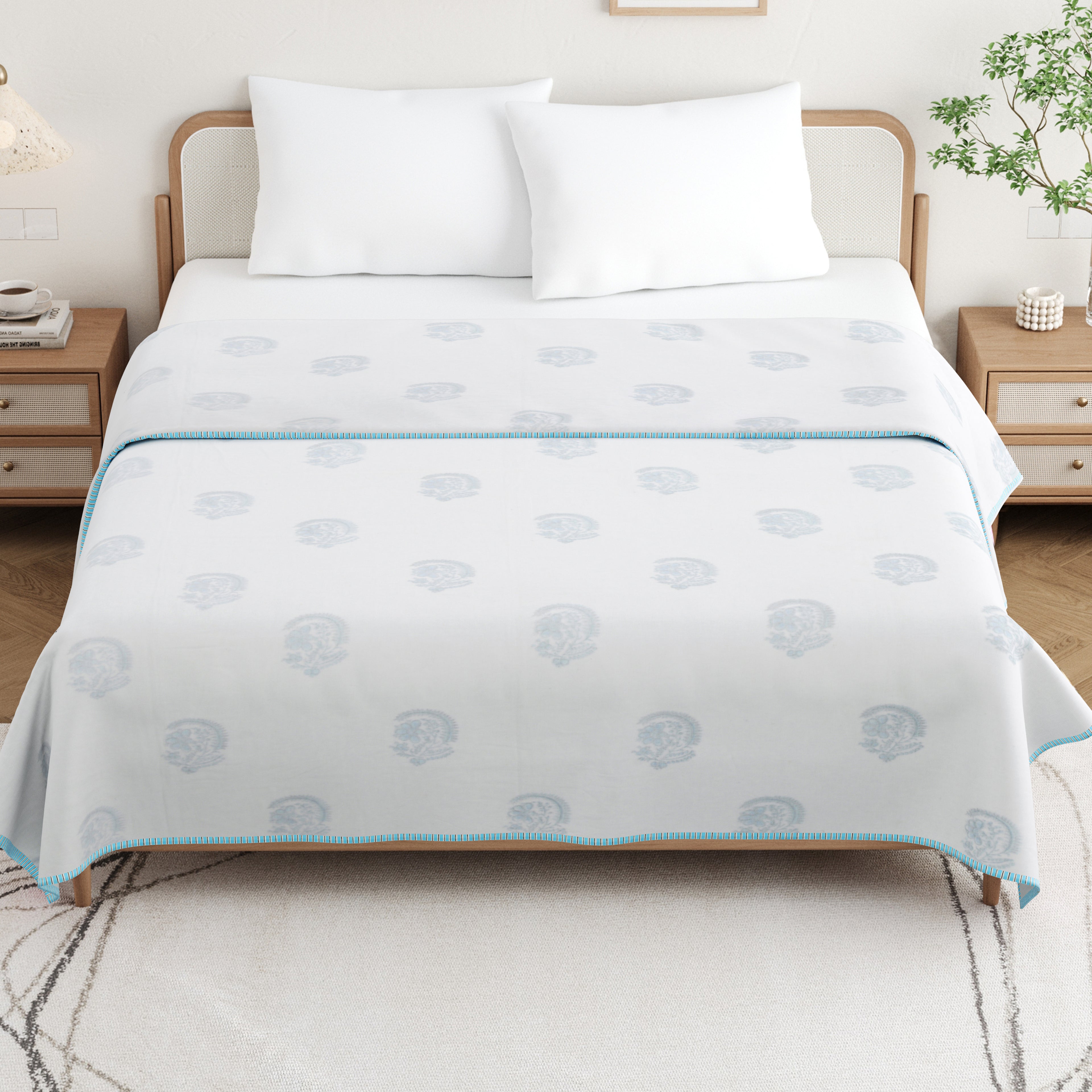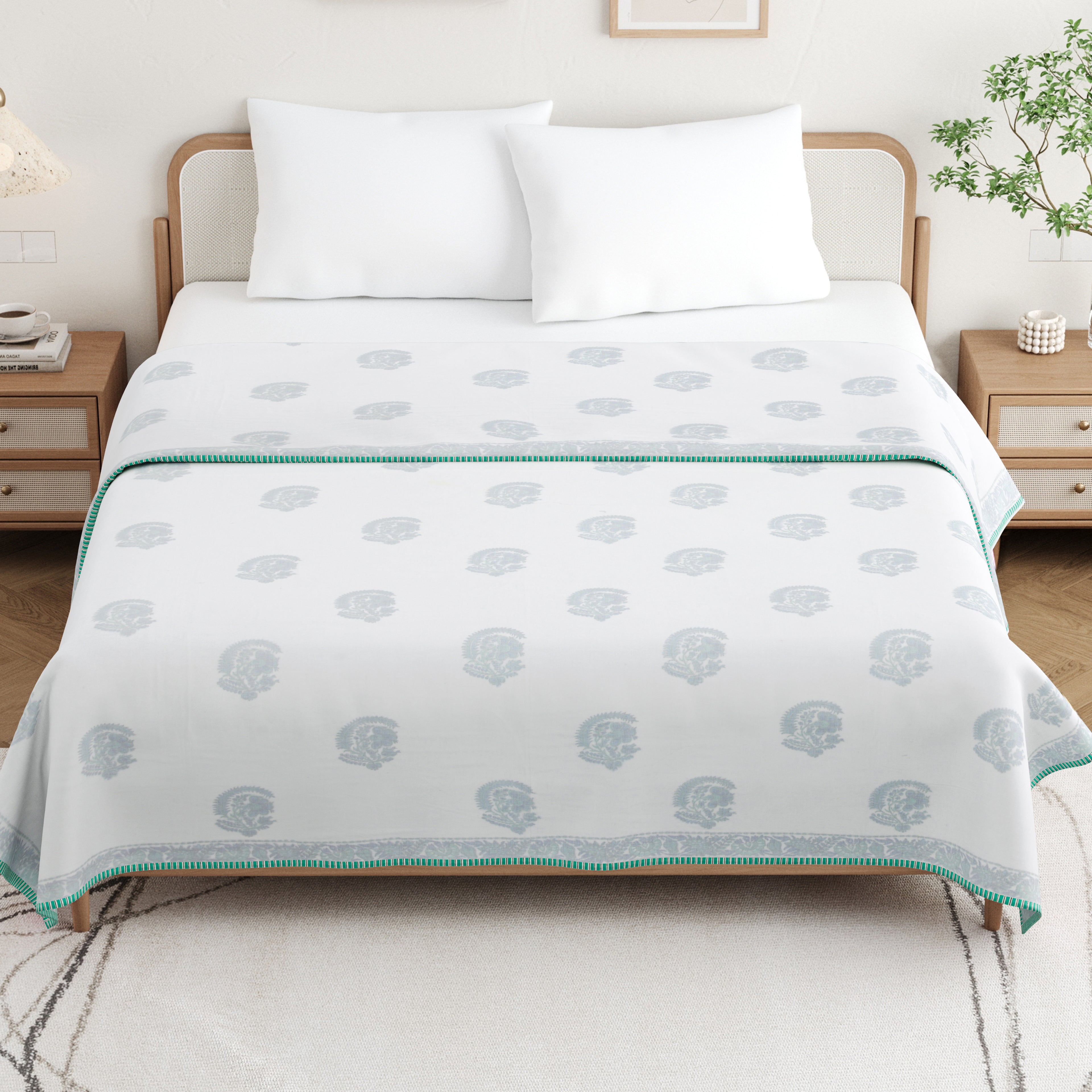🎨 Authentic Handblock Printing – Handcrafted with intricate handblock prints by skilled artisans, each dohar carries timeless charm, making it not just a blanket but a piece of art for your bedroom.