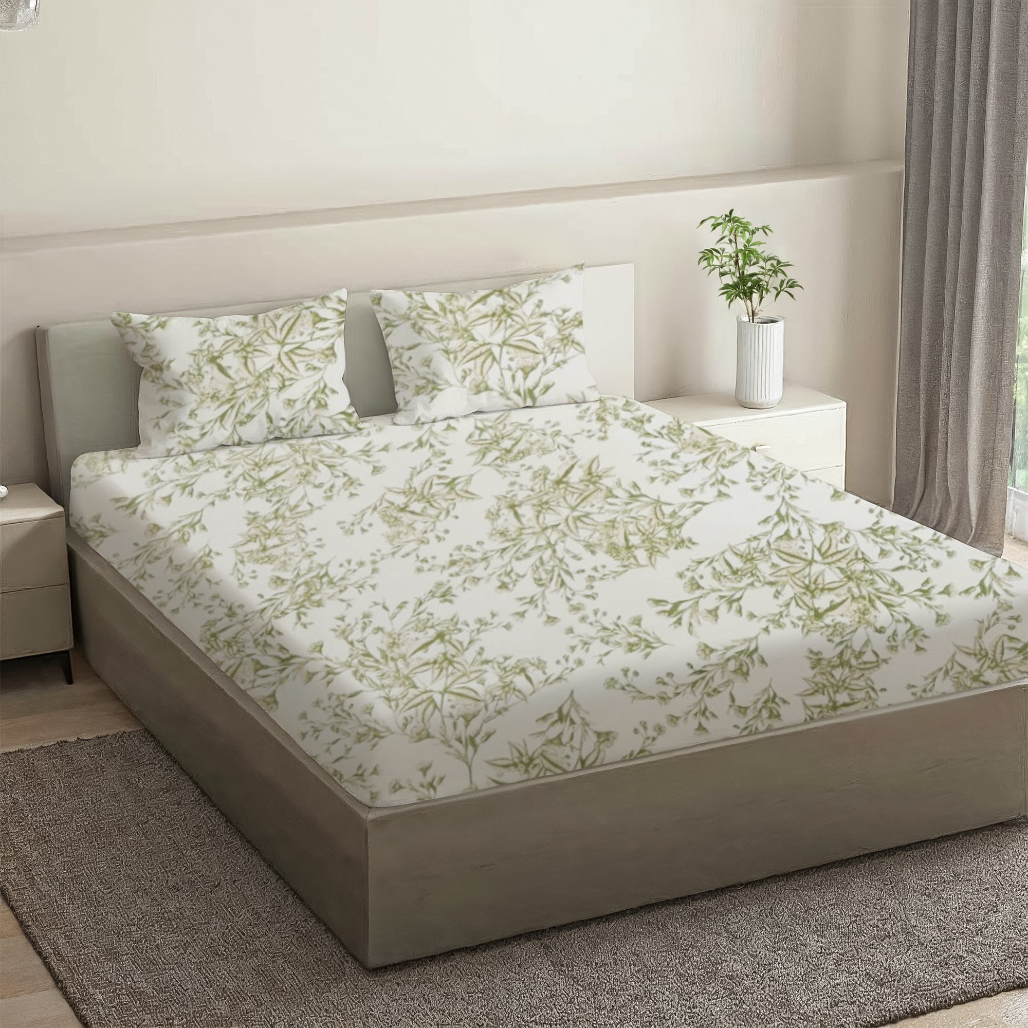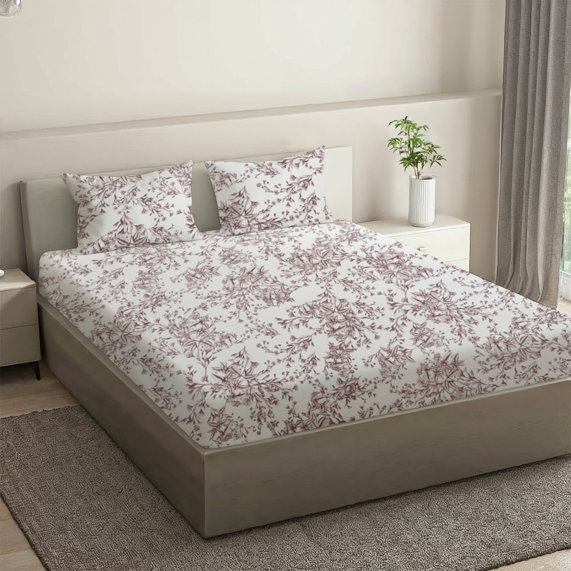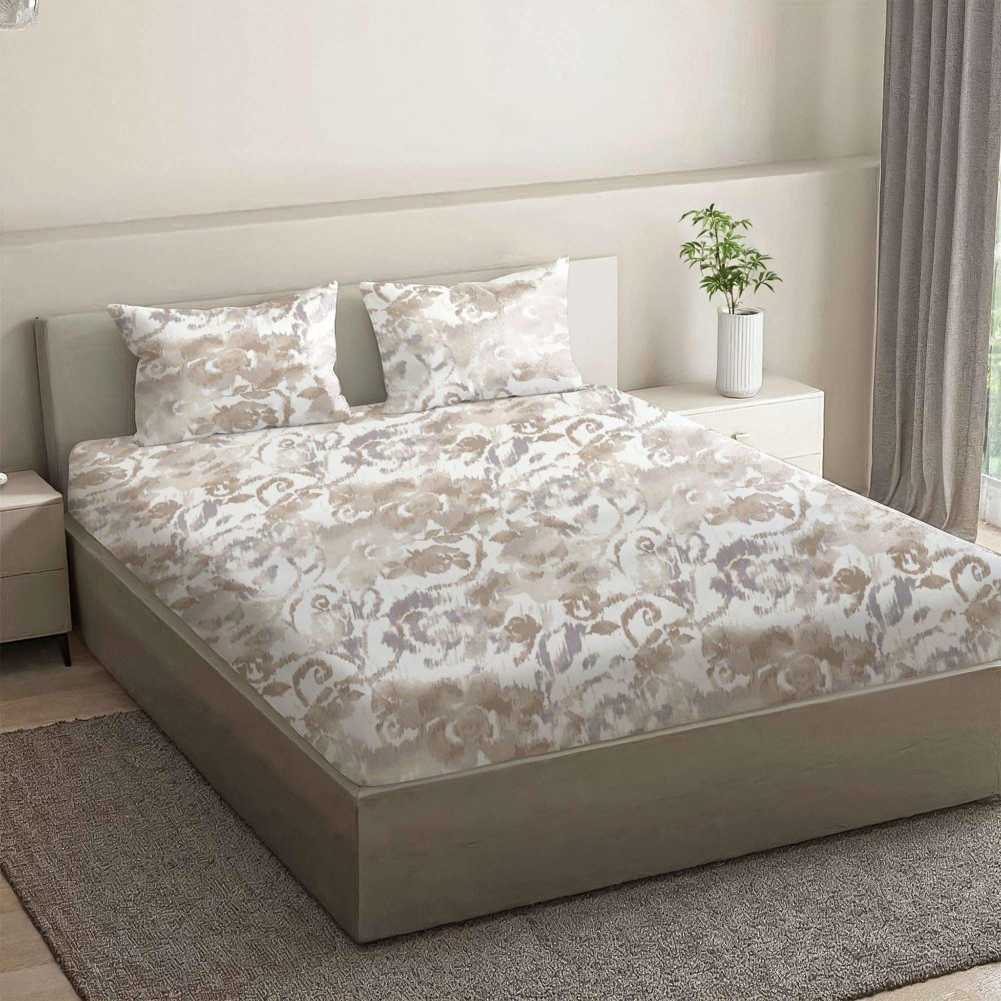 All-Around Elasticized Deep Pocket Design – Our fitted sheet is designed with all-around elastic, securely fitting mattresses up to 10–12 inches thick. This prevents slipping, bunching, or wrinkles, keeping your bed perfectly smooth and polished at all times. Available in Single, Double, King & Super King sizes.