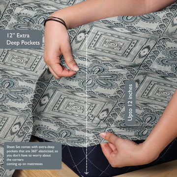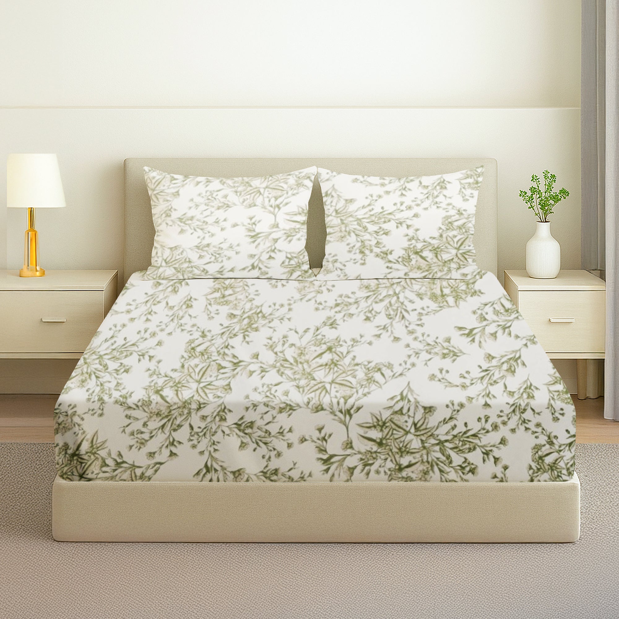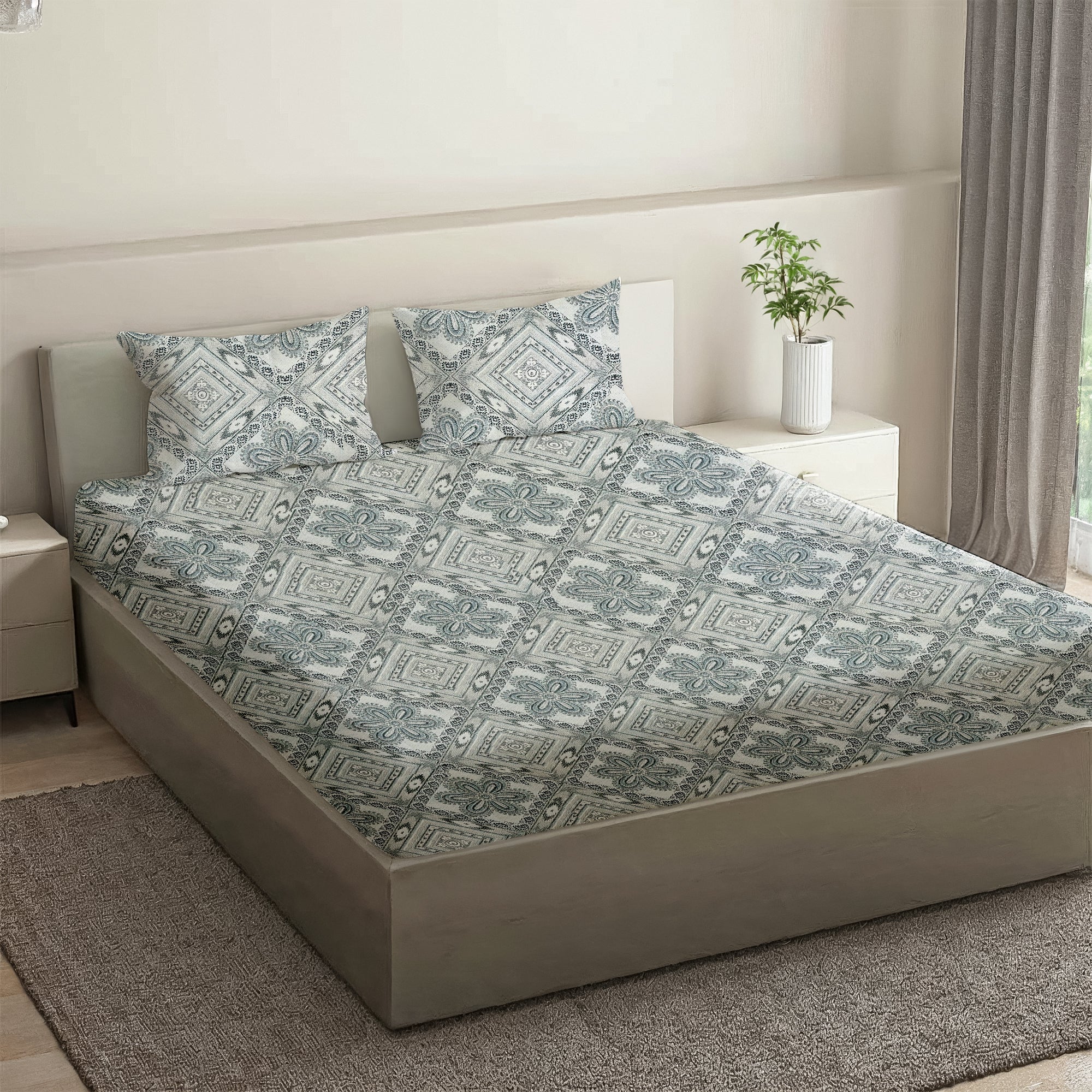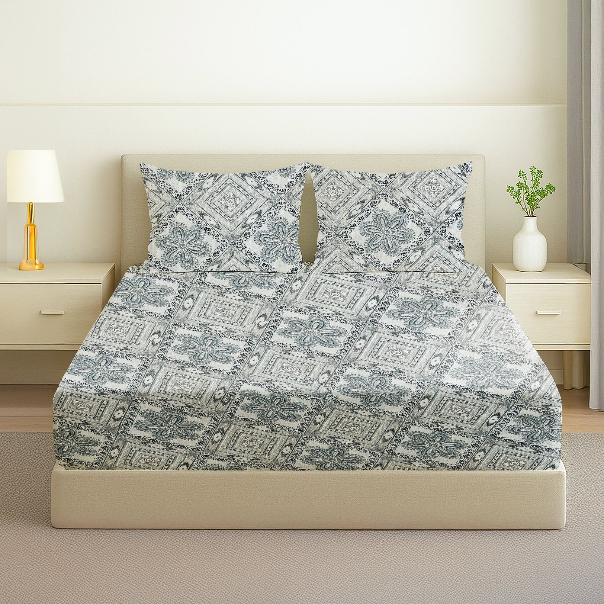All-Around Elasticized Deep Pocket Design – Our fitted sheet is designed with all-around elastic, securely fitting mattresses up to 10–12 inches thick. This prevents slipping, bunching, or wrinkles, keeping your bed perfectly smooth and polished at all times. Available in Single, Double, King & Super King sizes.