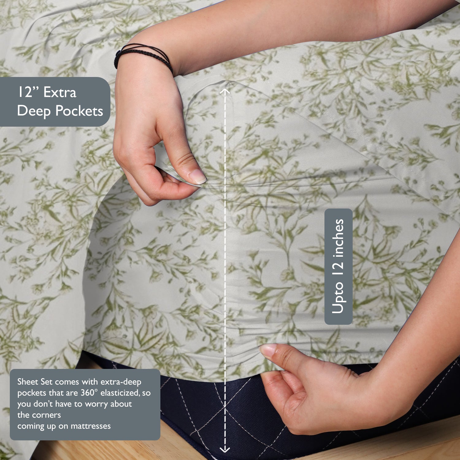 Complete Package Content – Includes 1 Fitted Sheet with Deep Pockets + Matching Pillow Covers, providing a coordinated, hotel-style look. Pillow covers feature neat stitching and durable seams for enhanced comfort and longevity.