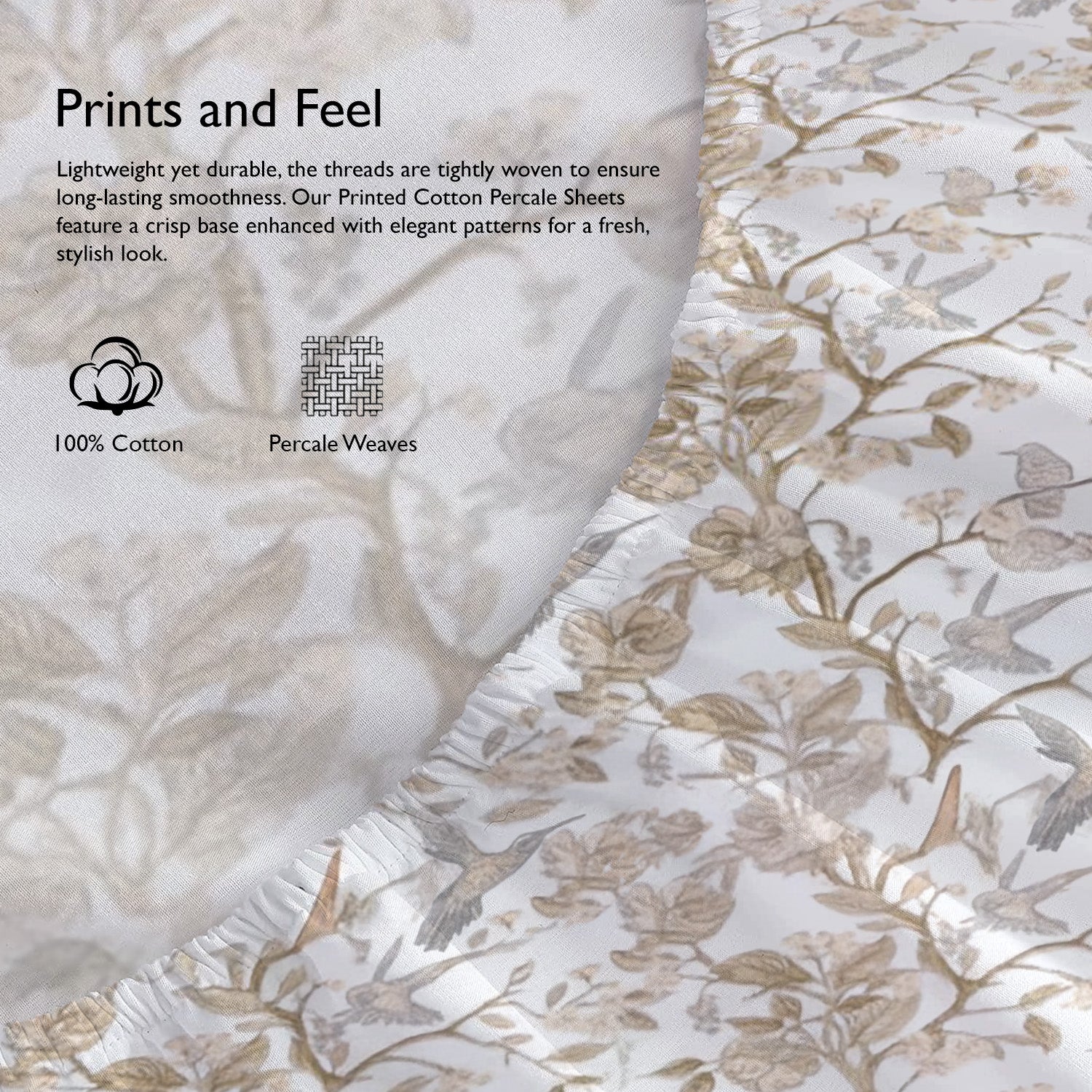 Drift into comfort with our OEKO-TEX® certified 100% natural cotton fitted sheet, woven in a cool and breathable 300-thread count percale weave. Enjoy the buttery softness, smooth touch, and fresh, airy feel that keeps you cozy in winters and cool in summers—just like premium hotel bedding.