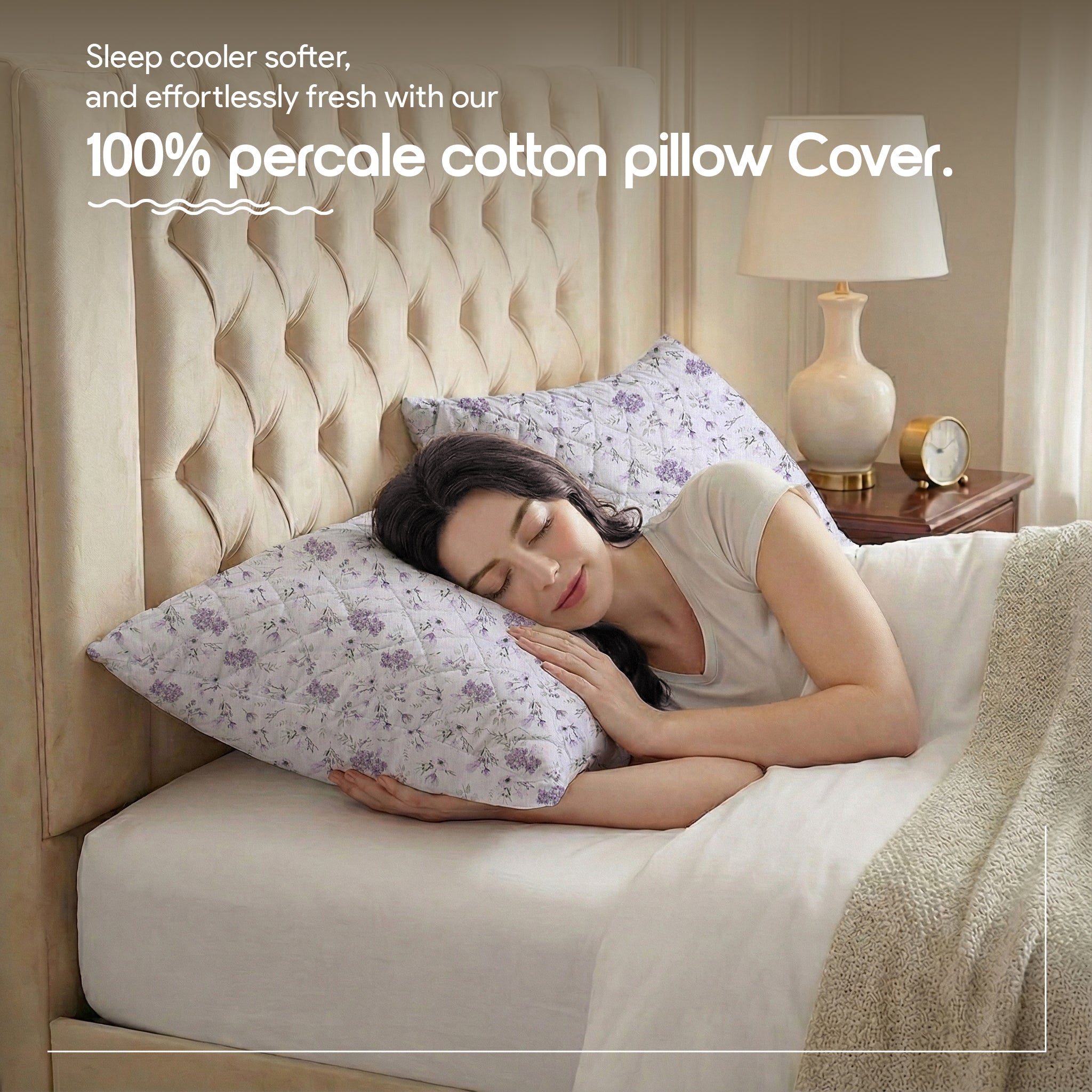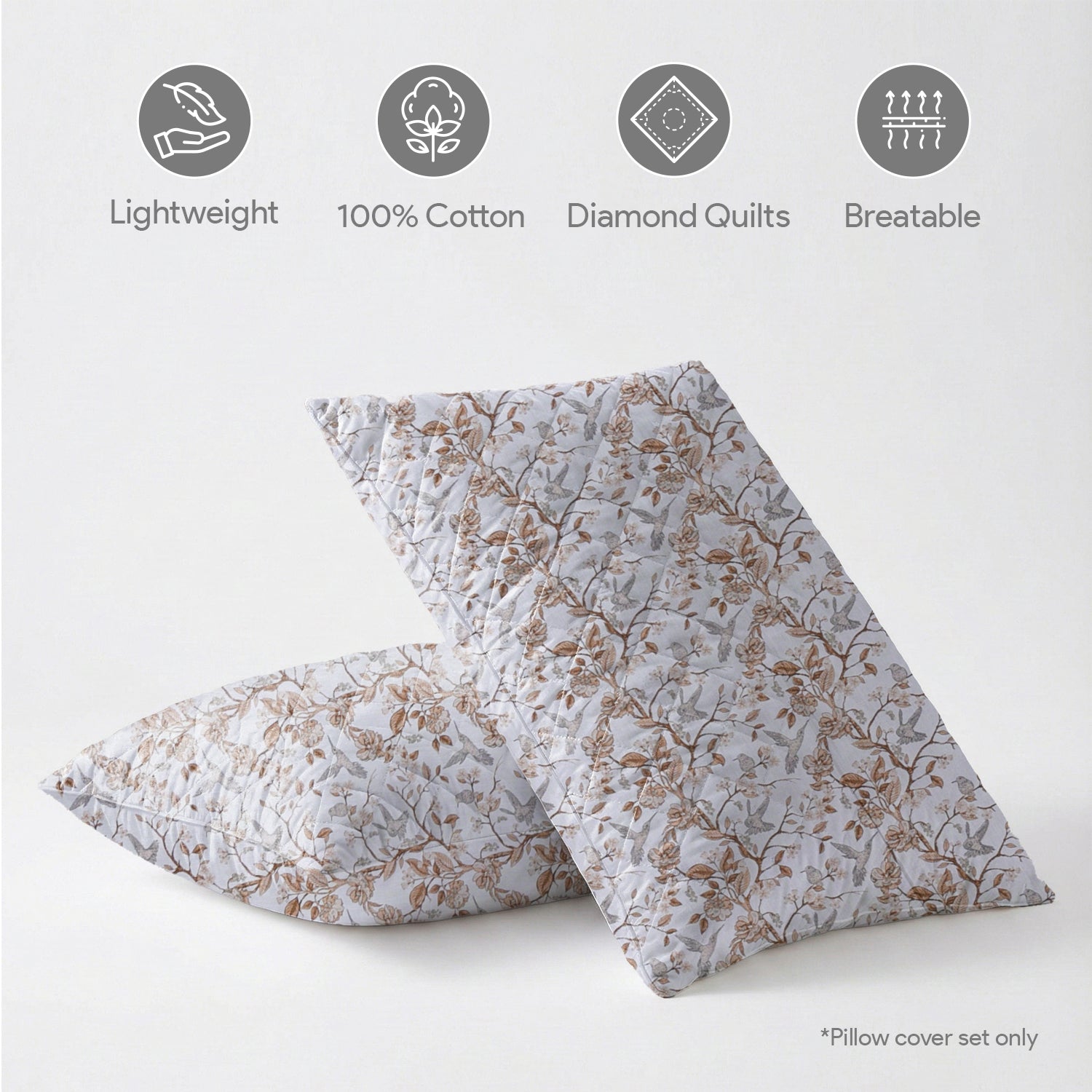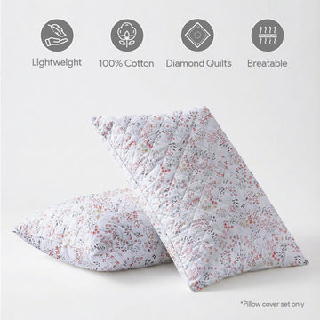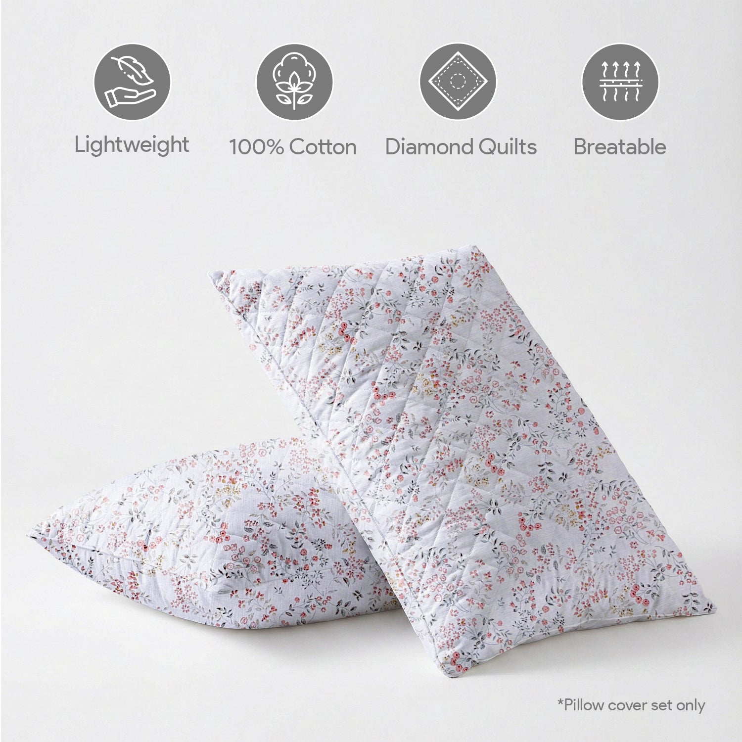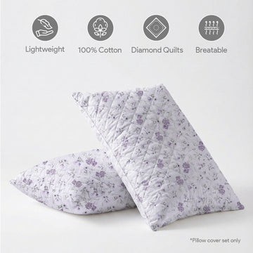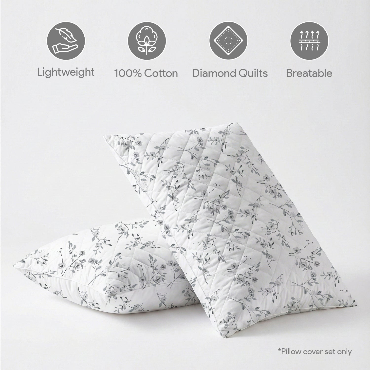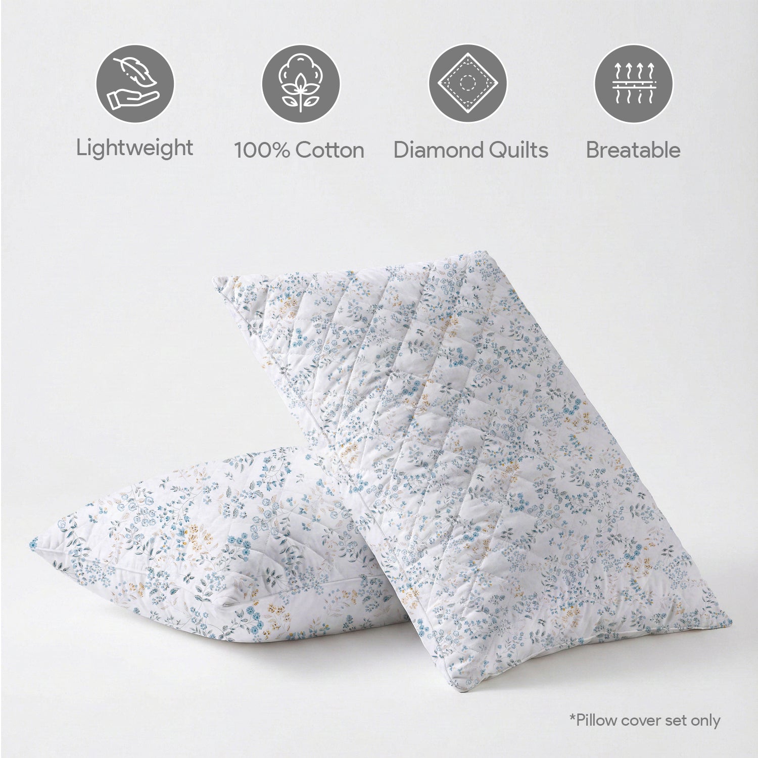 Cotton Printed Quilted Pillow Covers,Ultra-Soft, Cooling & Breathable | Skin & Hair Friendly | Zipper Closure |