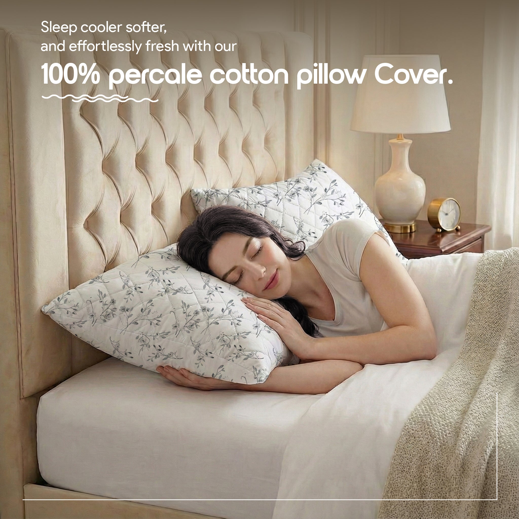 • 100% Percale Cotton Pillow Covers – Premium percale cotton fabric is ultra-soft, cooling, hypoallergenic, and gentle on skin & hair